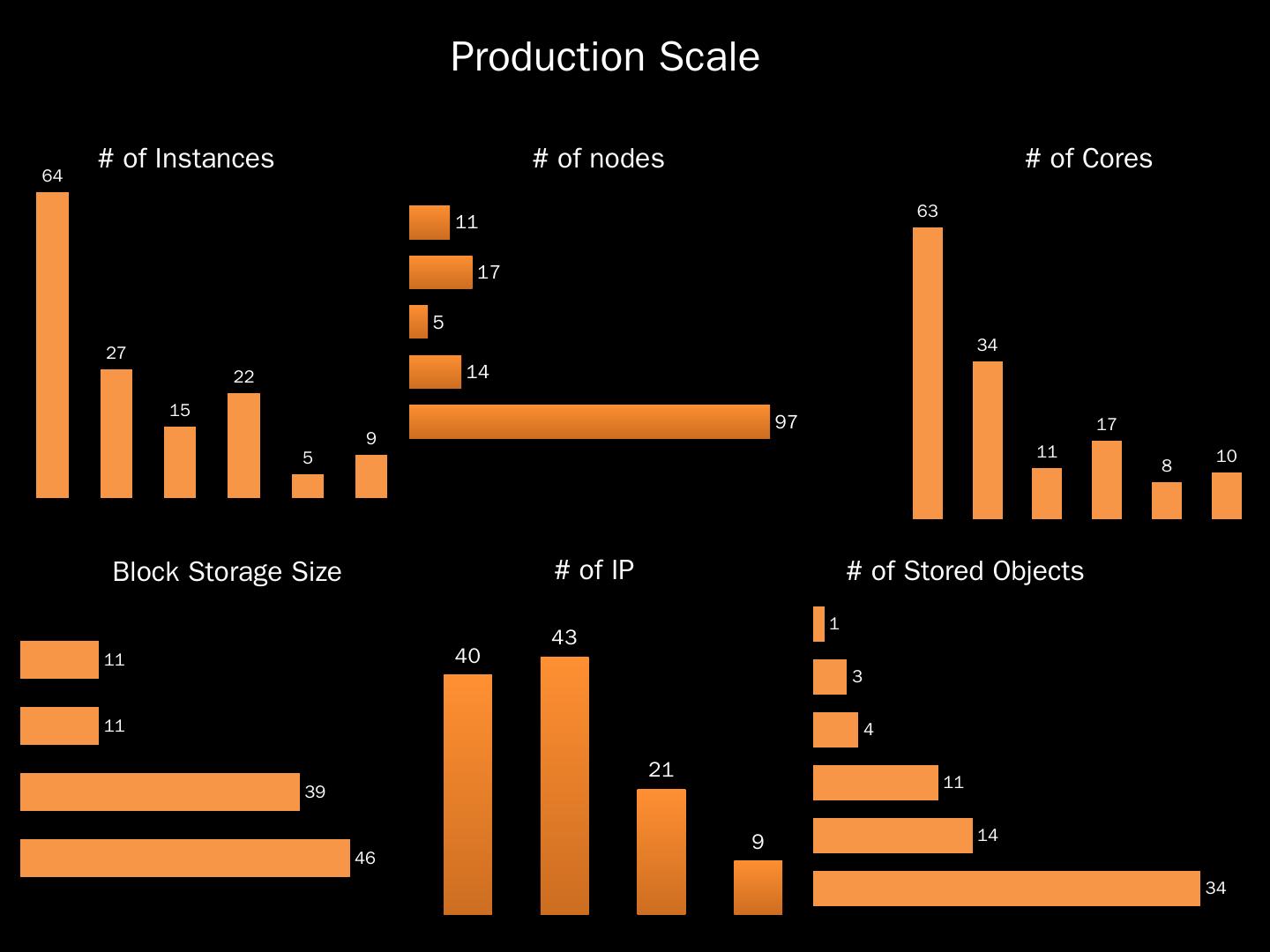 8 .# of Cores # of Instances # of Stored Objects Block Storage Size # of IP Production Scale # of nodes