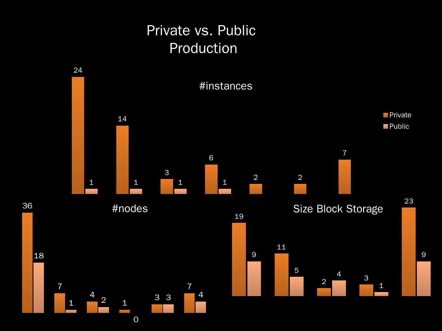 9 .#instances Private vs. Public Production #nodes Size Block Storage