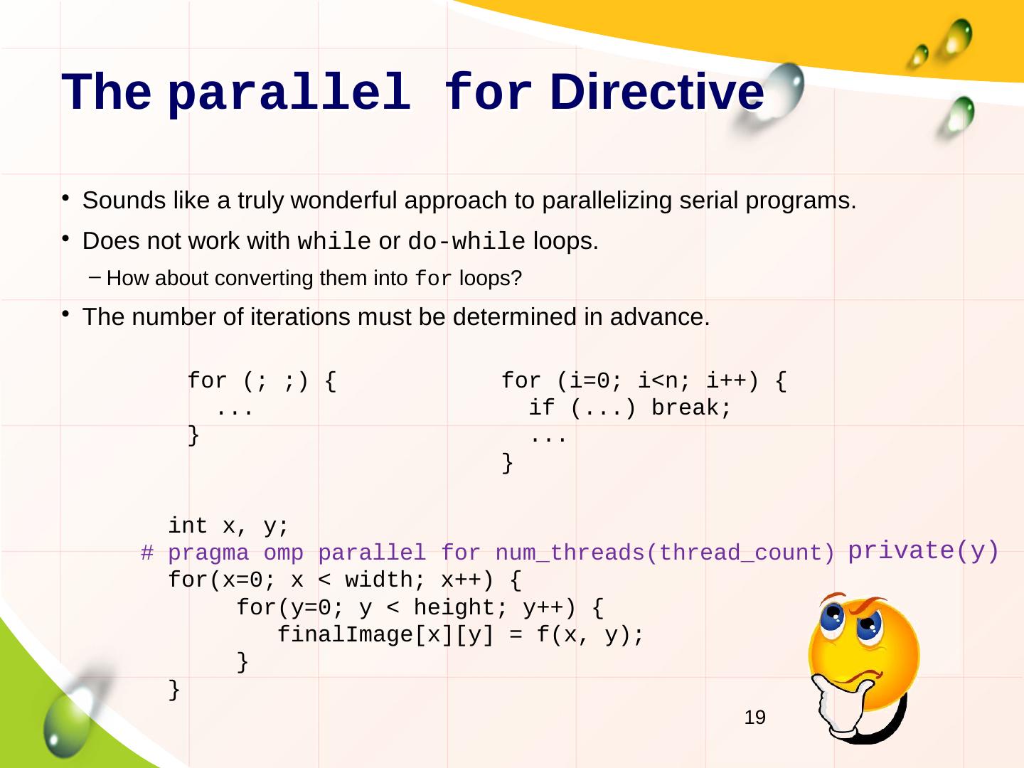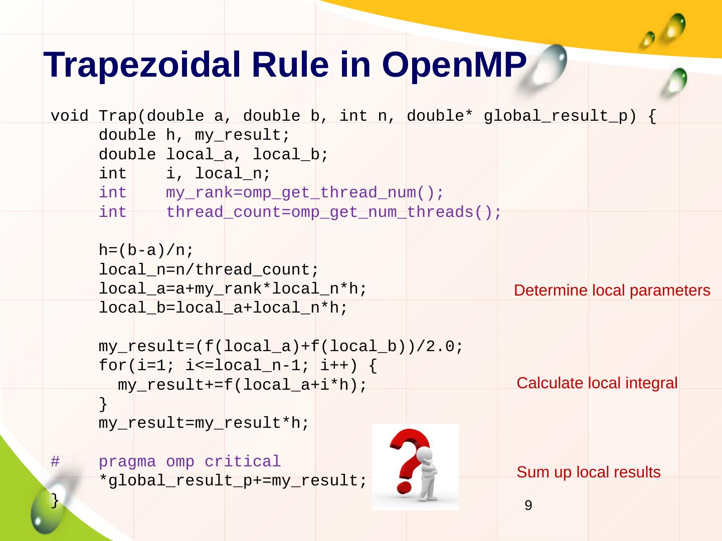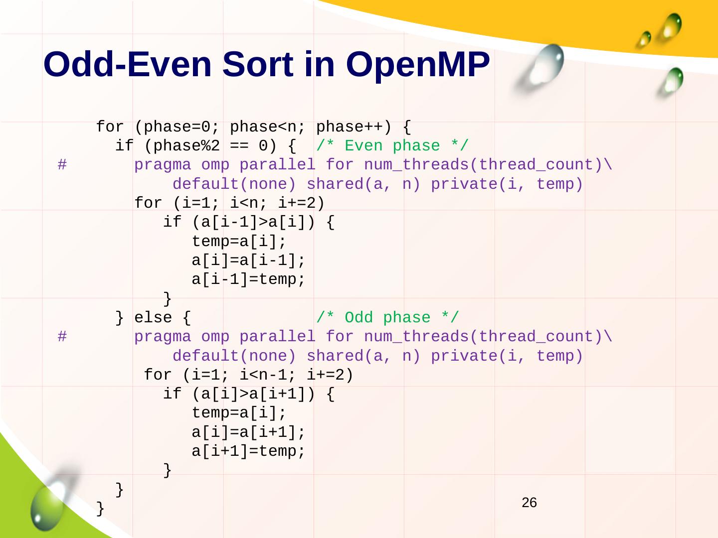 OpenMP. An API for shared memory multiprocessing (parallel) programming in C , C++ and Fortran. Supports multiple platforms (processor architectures and ...