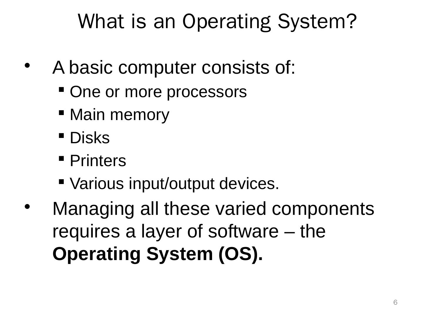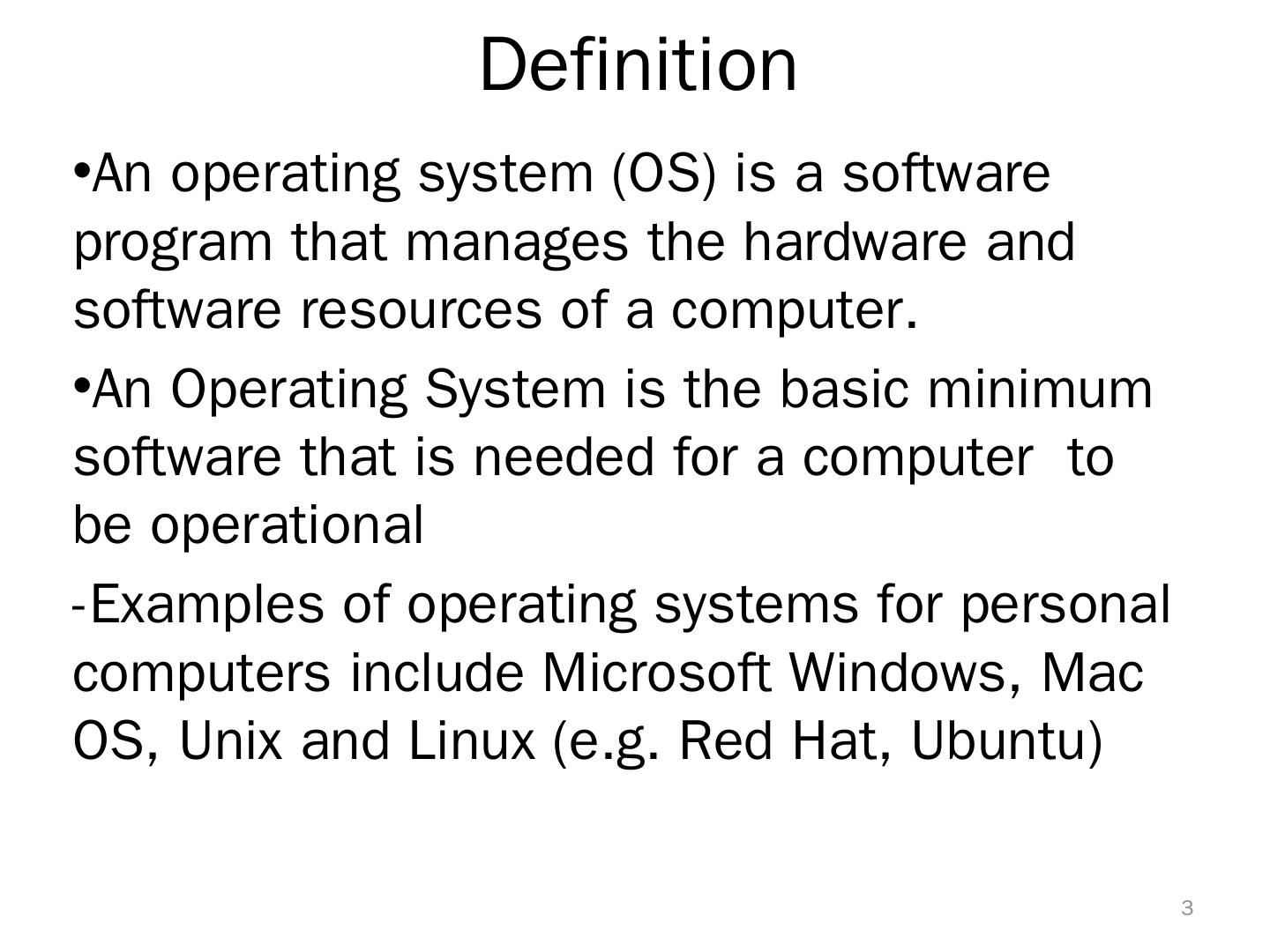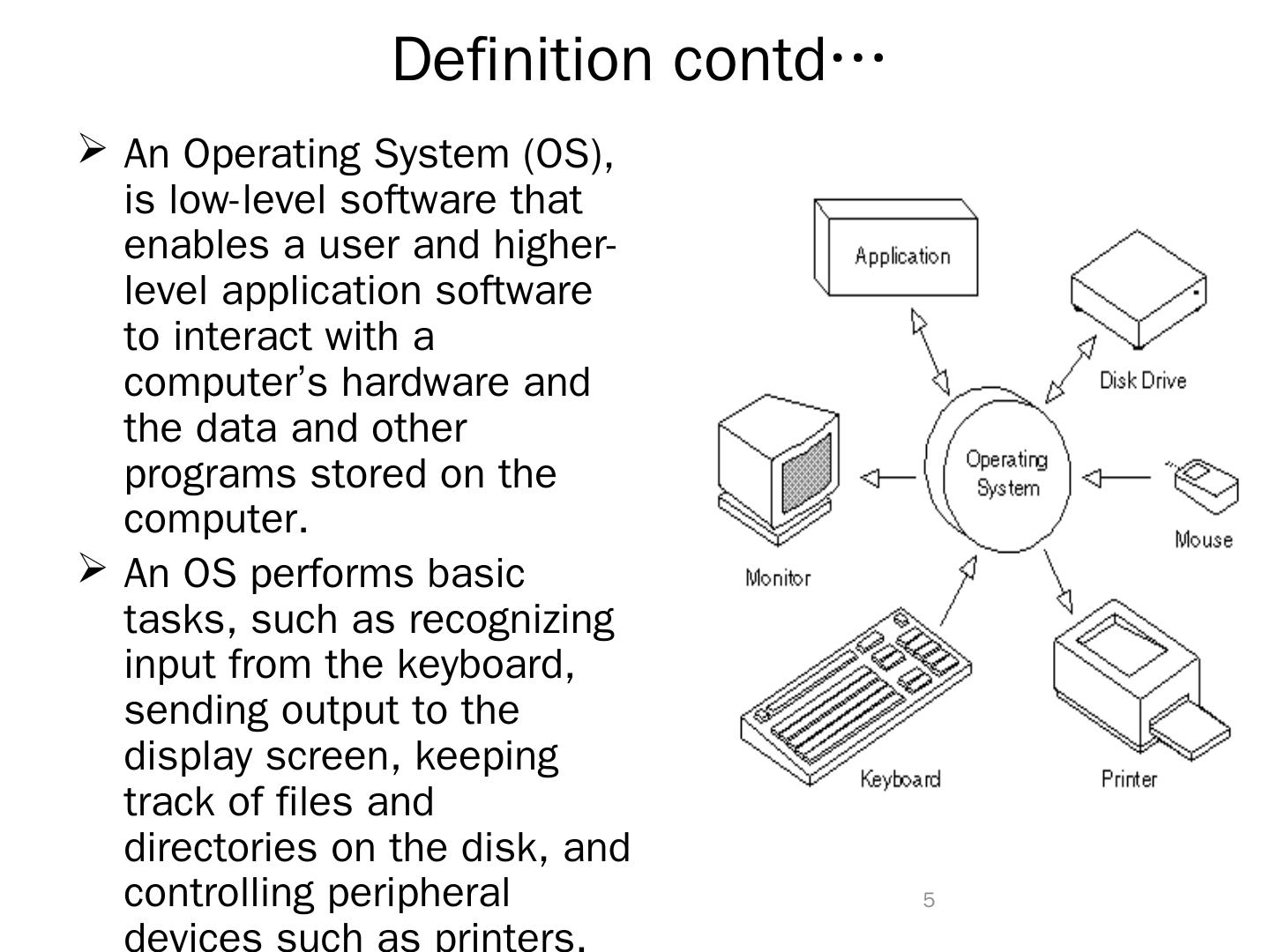 An Operating System (OS), is low-level software that enables a user and higher-level application software to interact with a computer's hardware and the data ...