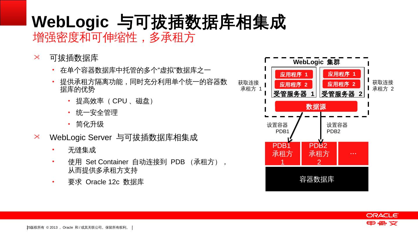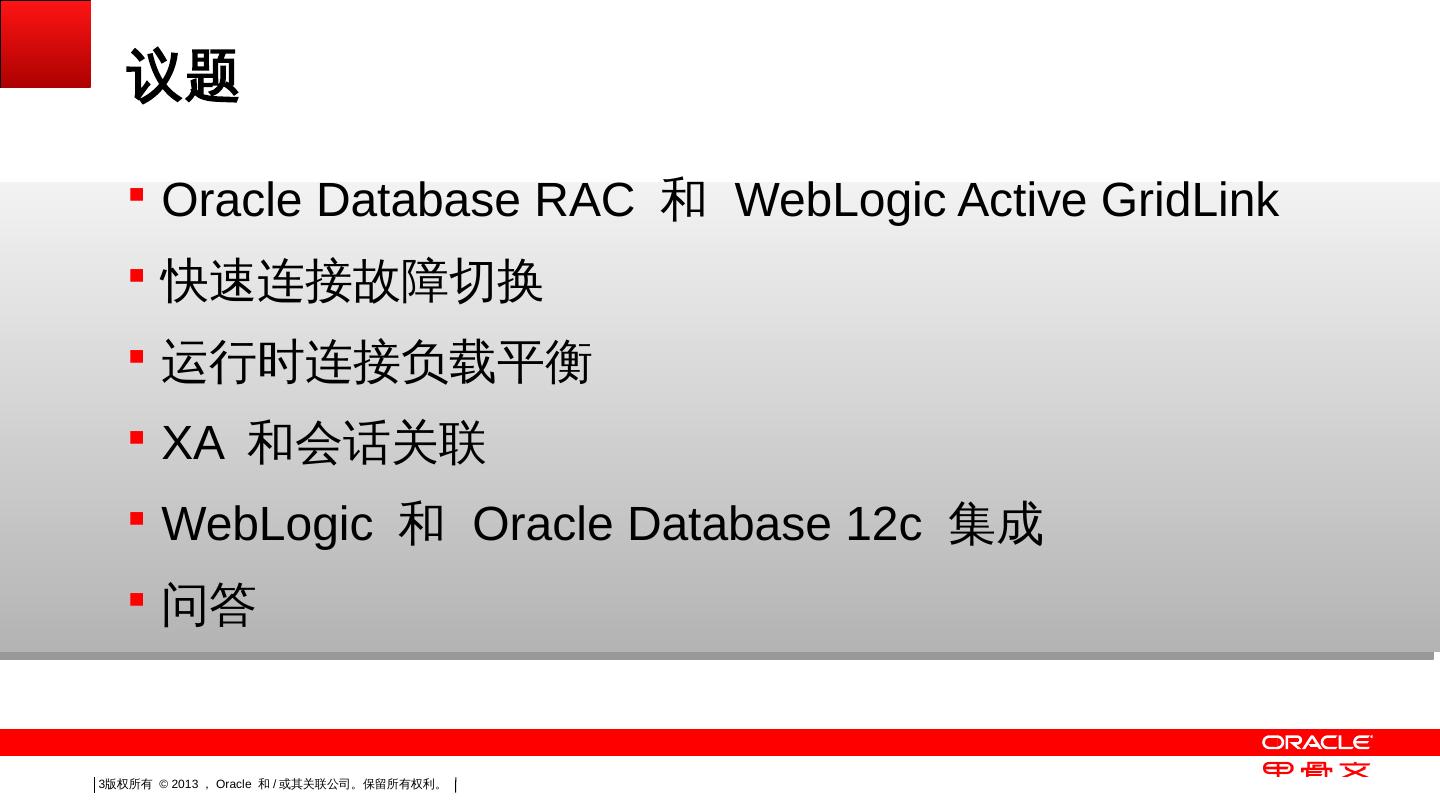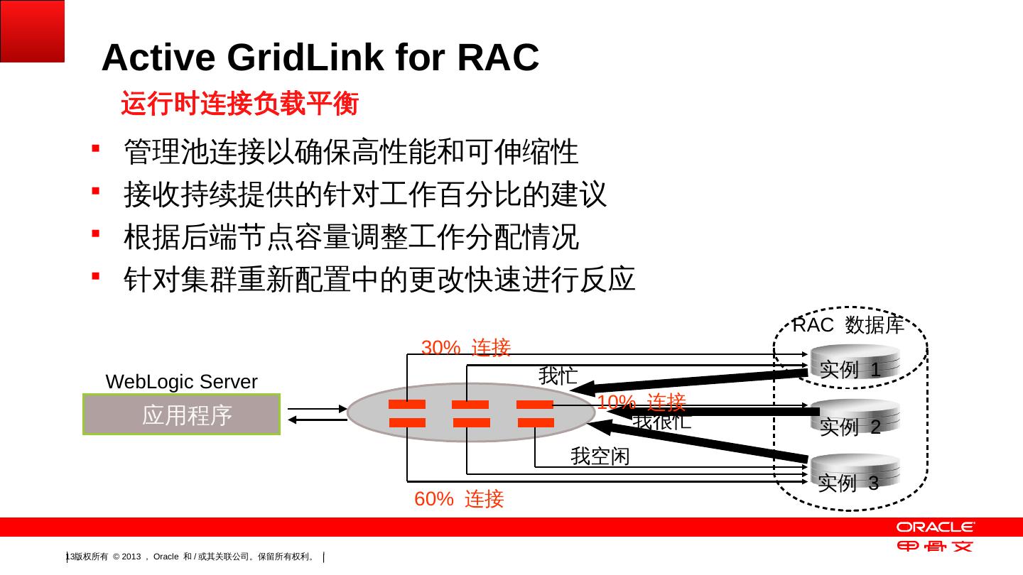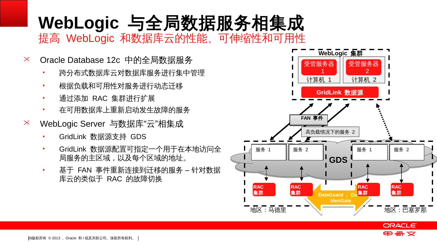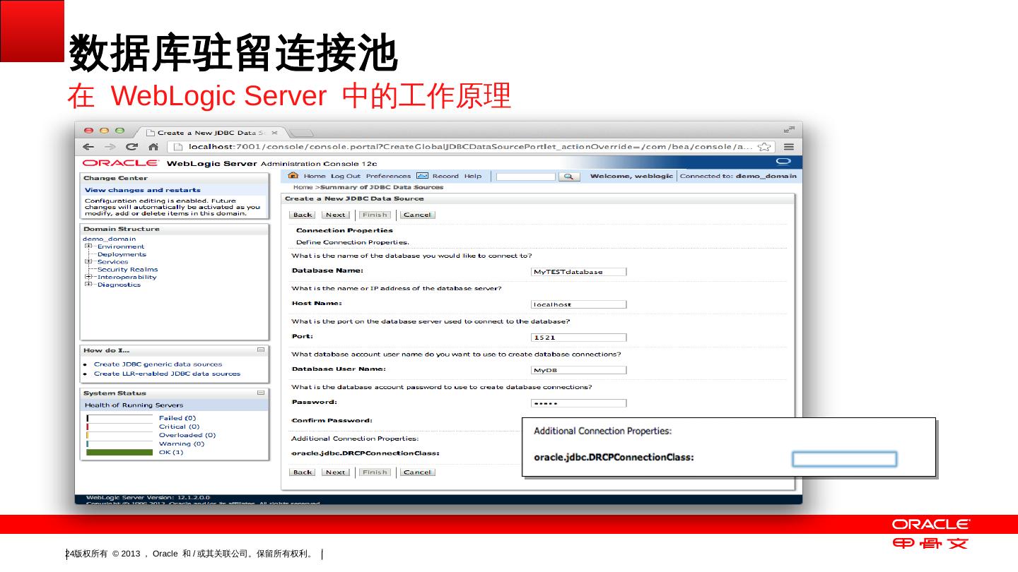 Active Gridlink 数据源和常规数据源(仅12c 驱动程序); 利用JDBC 重放(在12c 数据库中重新实现); 通过oracle.jdbc.replay.OracleDataSourceImpl 驱动程序类进行 ...