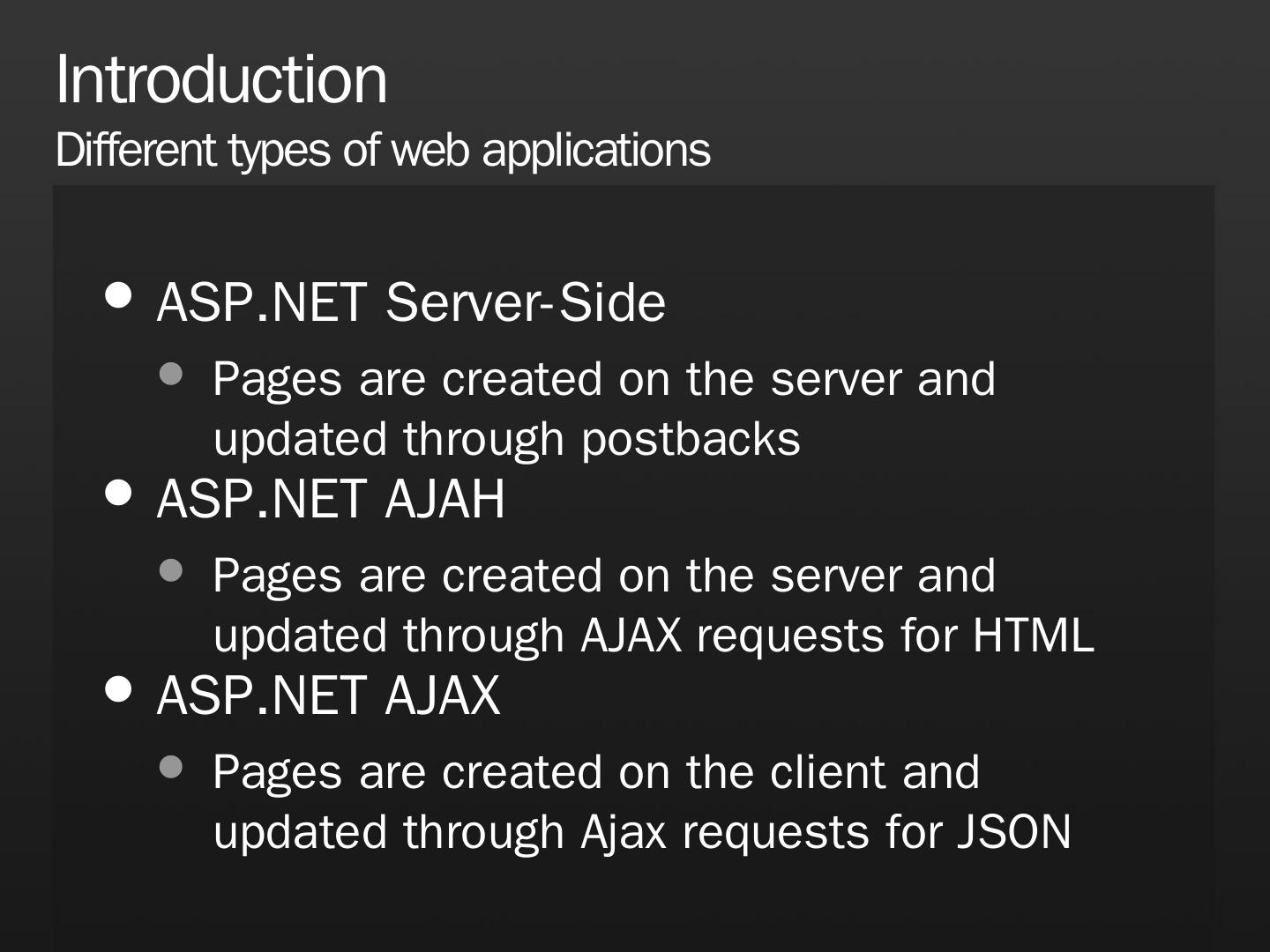 NET AJAX Is A Powerful Combination For Building AJAX Applications. ASP.NET Server-Side. Pages are created on the server and updated through postbacks.