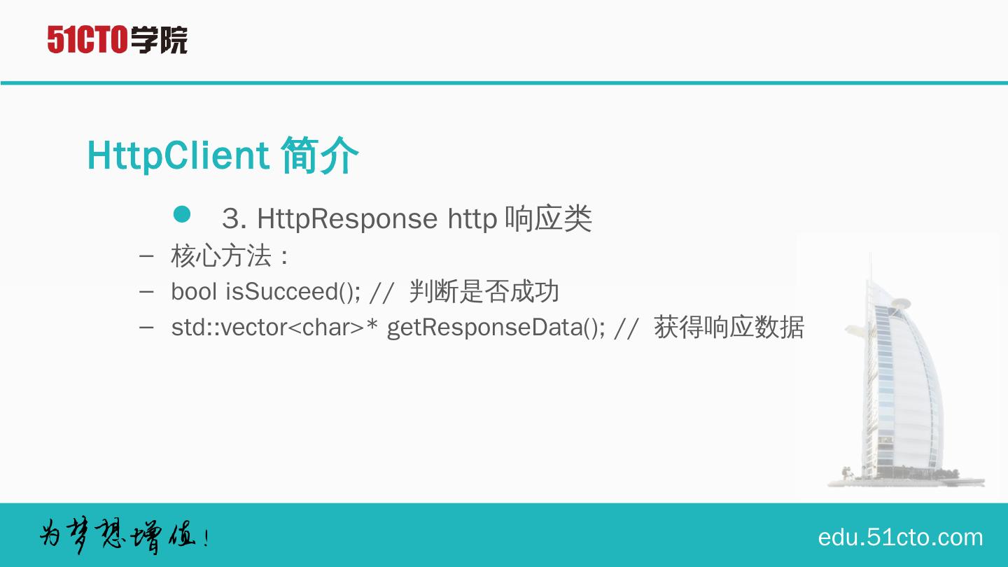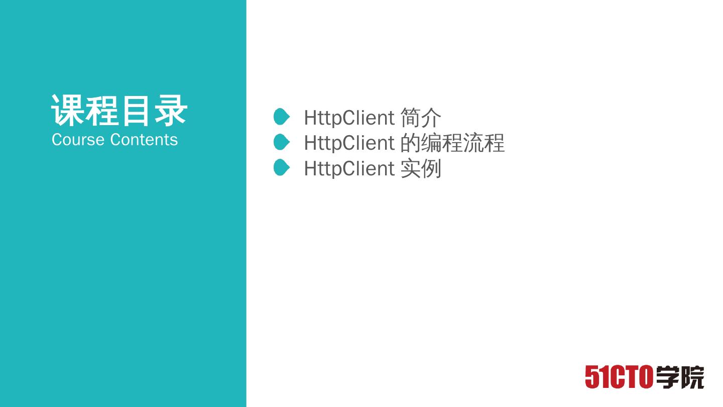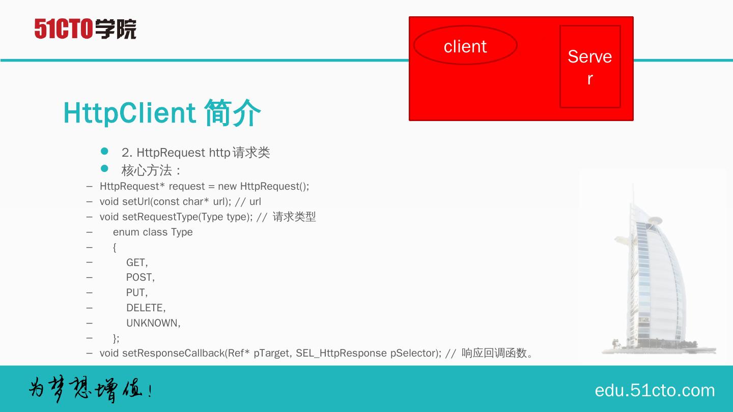 Cocos2d-x实战百集系列课程. edu.51cto.com. 讲师:. 郭宏志. 网络编程-HttpClient. edu.51cto.com. 课程目录. Course Contents. HttpClient简介; HttpClient的编程 ...