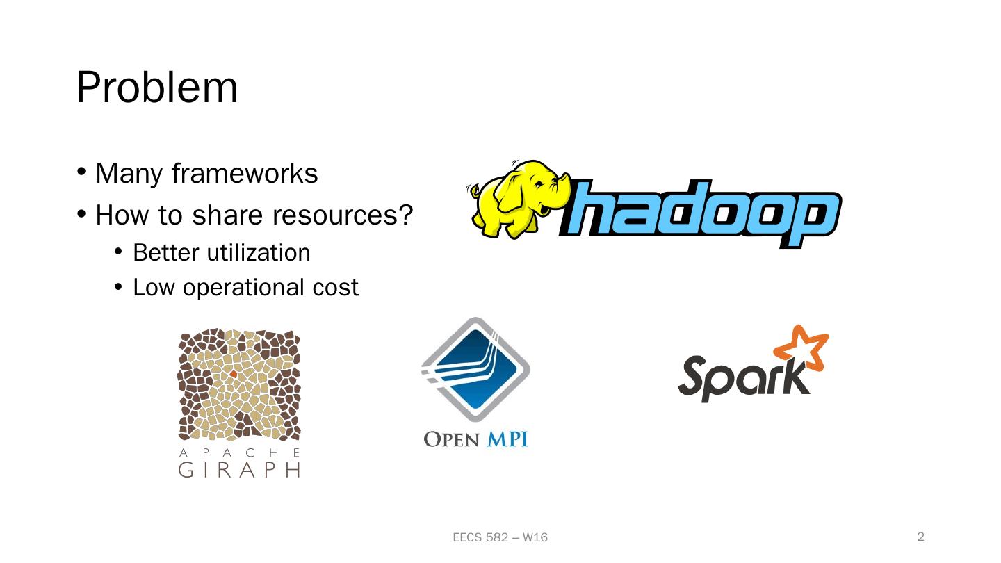 Mesos: A Platform for Fine-Grained Resource Sharing in the Data Center. Benjamin Hindman, Andy Konwinski, Matei Zaharia, Ali Ghodsi, Anthony D. Joseph, ...