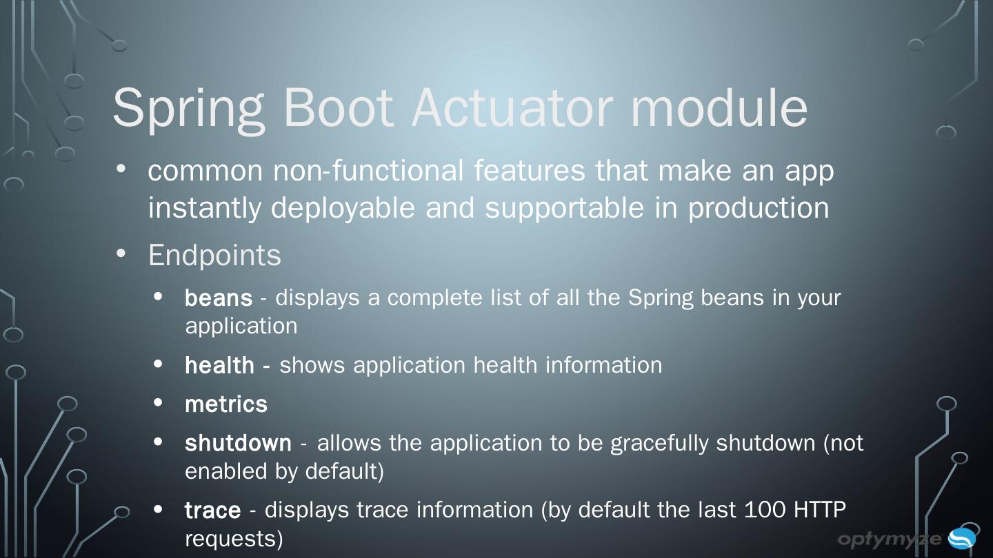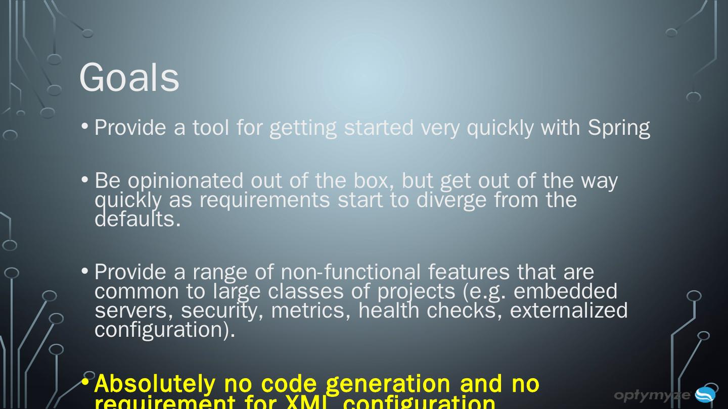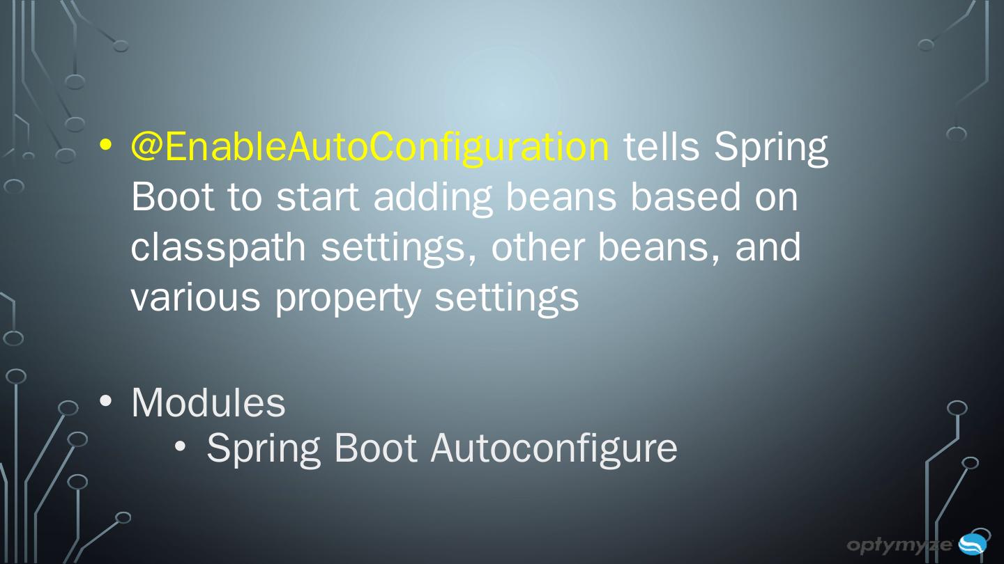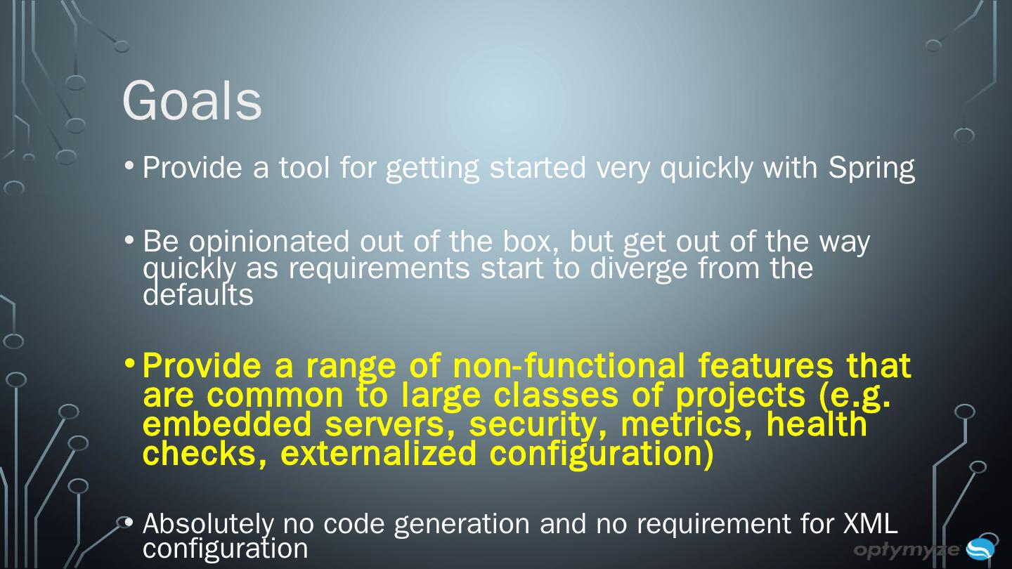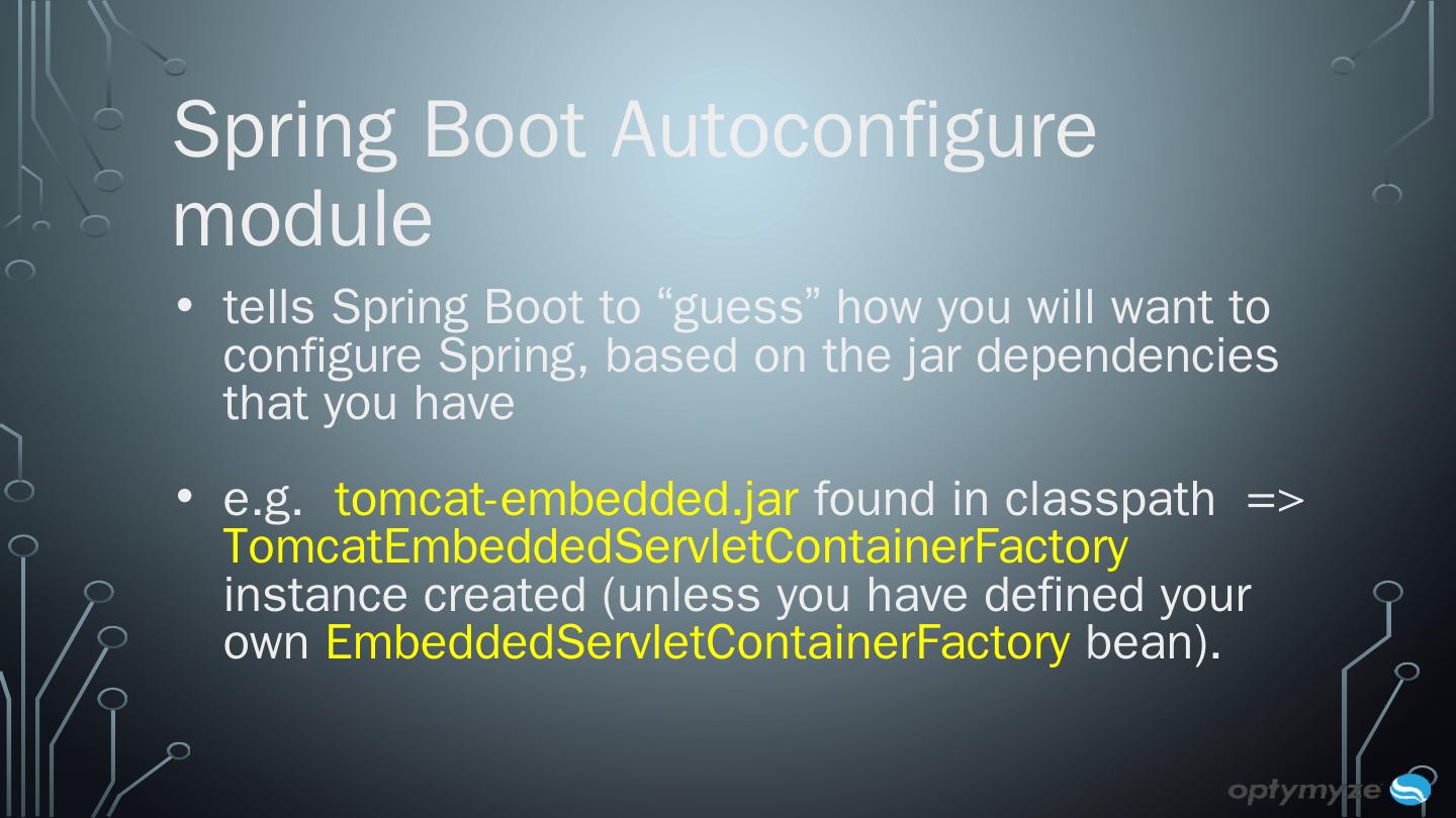 What is Spring Boot? Framework developed on top of Spring to ease the bootstrapping and development of new Spring based applications that you can "just ...