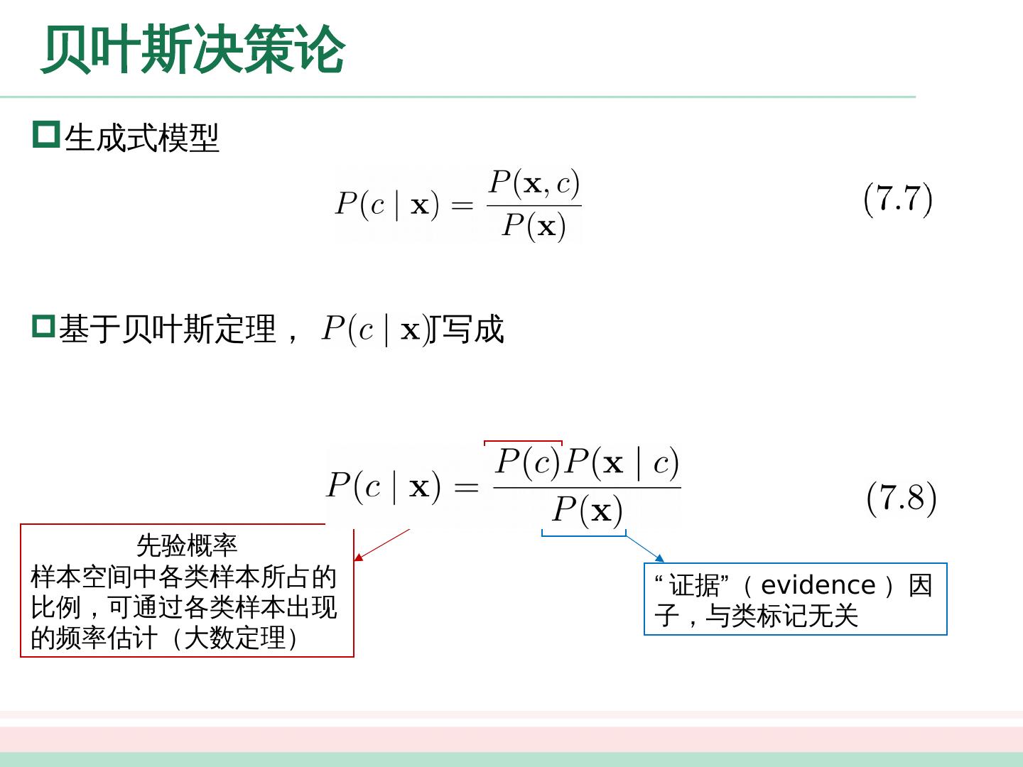14 .贝叶斯决策论 生成式模型 基于贝叶斯定理, 可写成