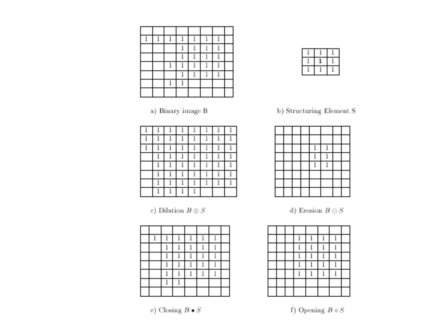 7 . Mathematical Morphology (Dilation, Erosion, Closing, Opening) • Dilation Dilation expands the connected sets of 1s of a binary image. It can be used for 1. growing features 2. filling holes and gaps