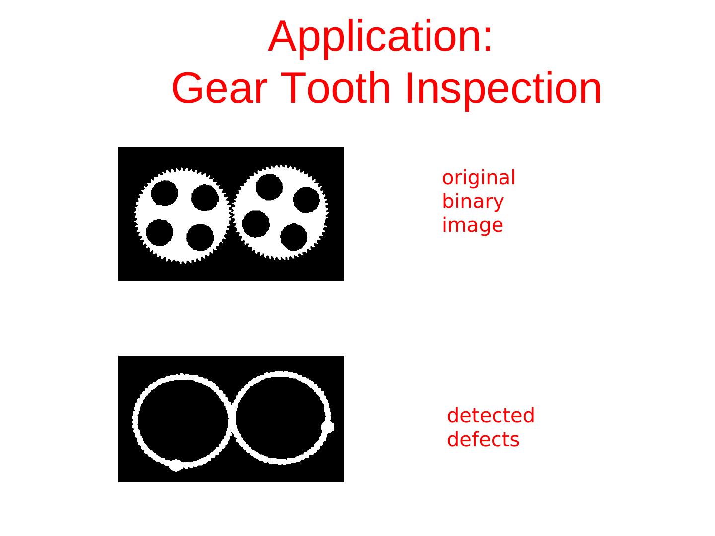 14 . Application: Gear Tooth Inspection original binary image detected defects