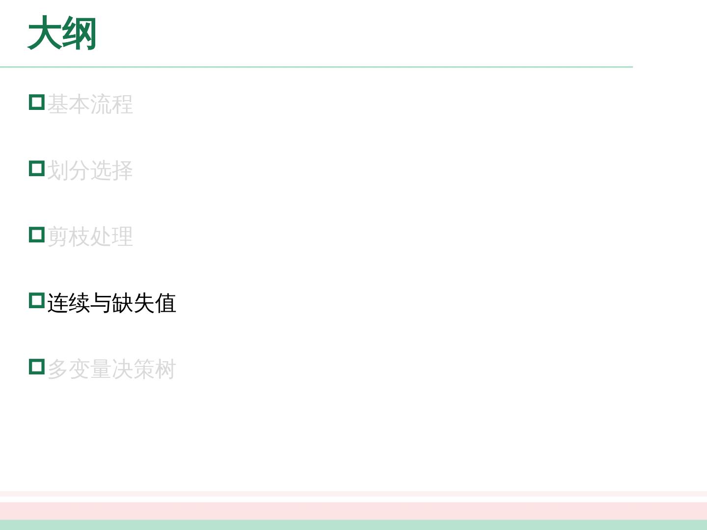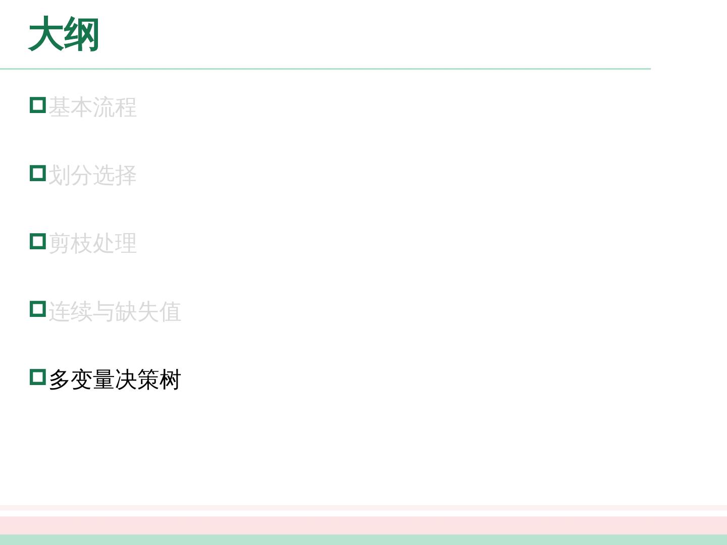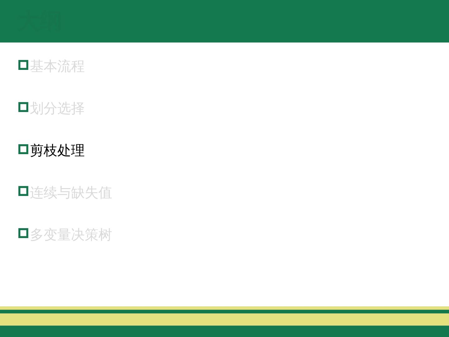 3 .大纲 基本流程 划分选择 剪枝处理 连续与缺失值 多变量决策树