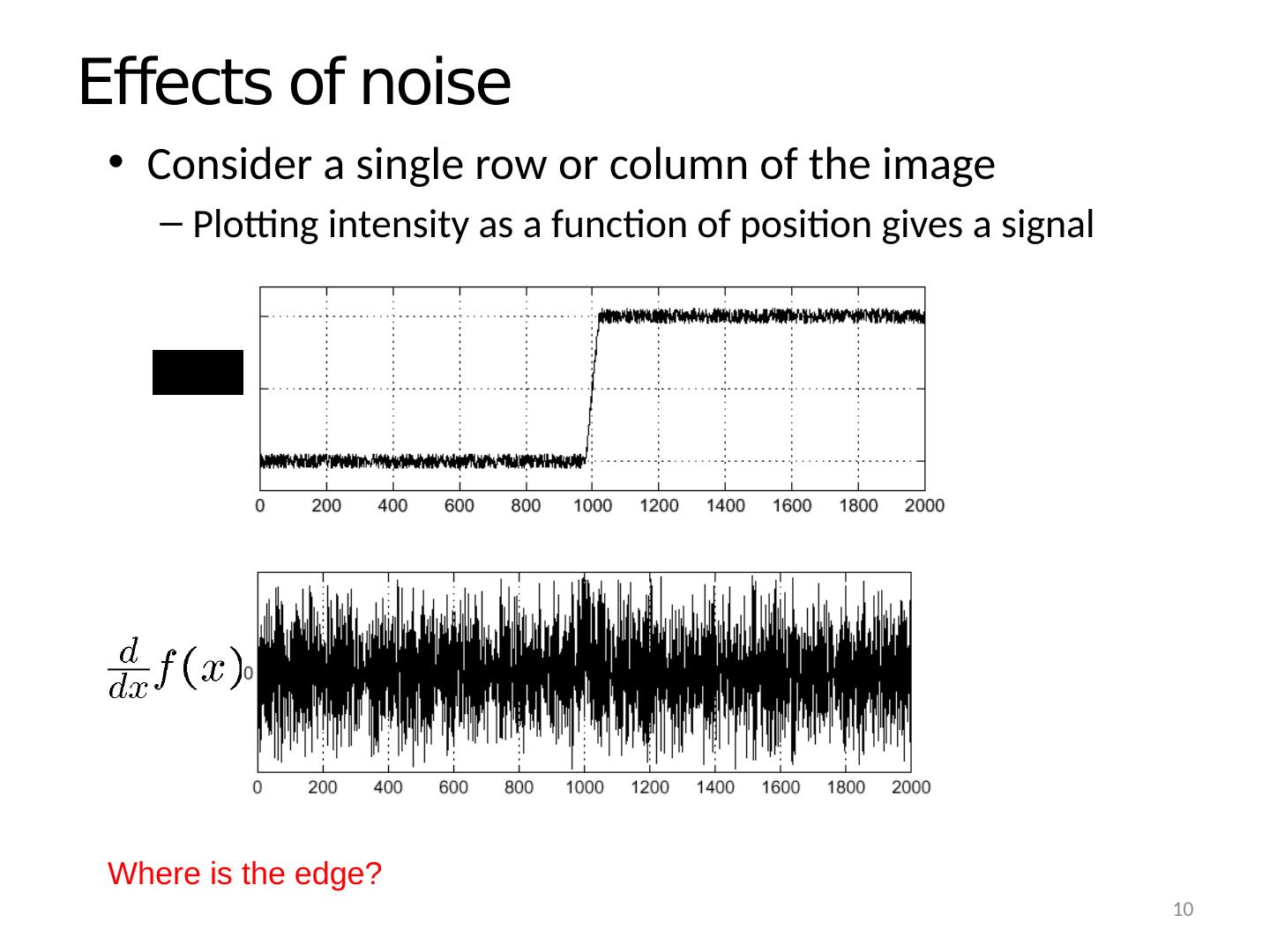 10 .Effects of noise Consider a single row or column of the image Plotting intensity as a function of position gives a signal Where is the edge? 10