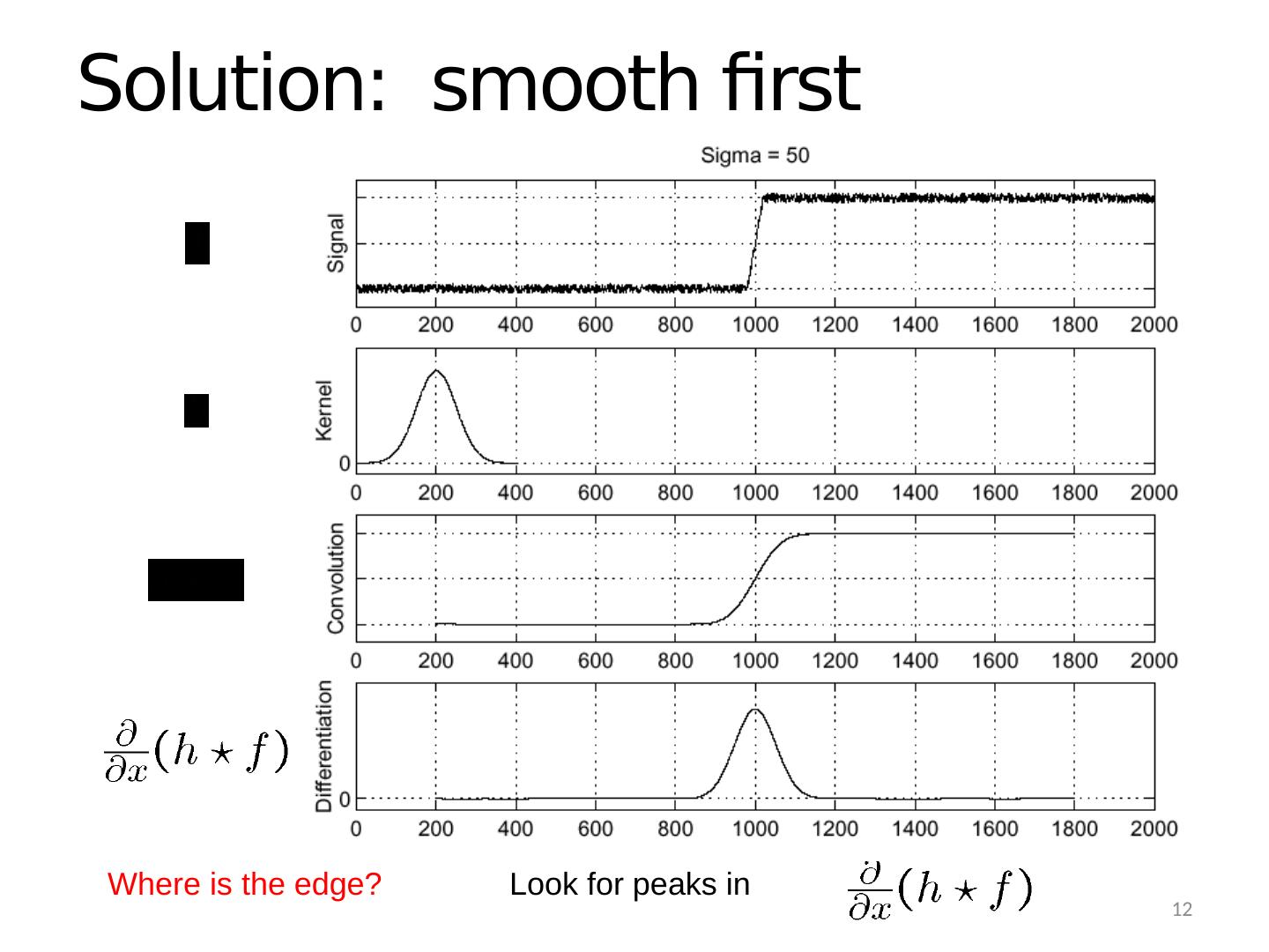 12 .Where is the edge? Solution: smooth first Look for peaks in 12