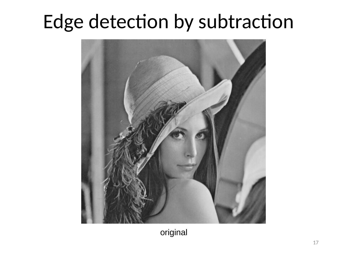 18 .Edge detection by subtraction smoothed (5x5 Gaussian) 18