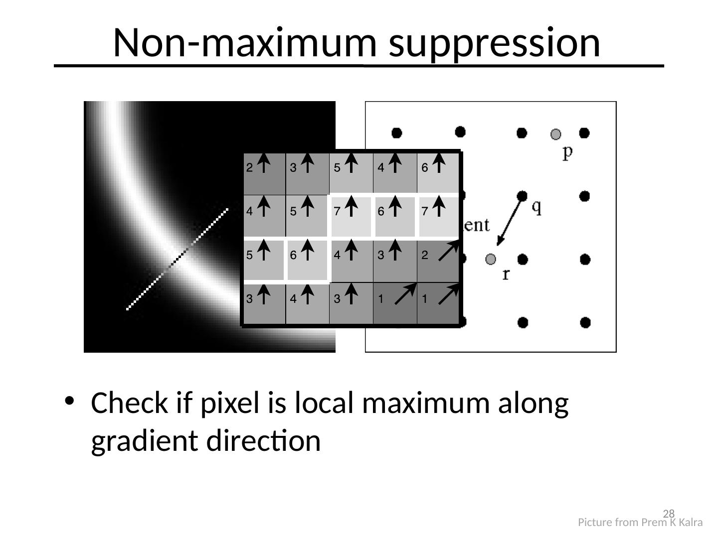 28 .Non-maximum suppression Check if pixel is local maximum along gradient direction Picture from Prem K Kalra 28