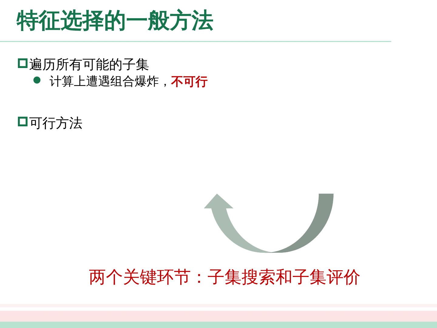 7 .特征选择的一般方法 遍历所有可能的子集 计算上遭遇组合爆炸, 不可行 可行方法 两个关键环节:子集搜索和子集评价