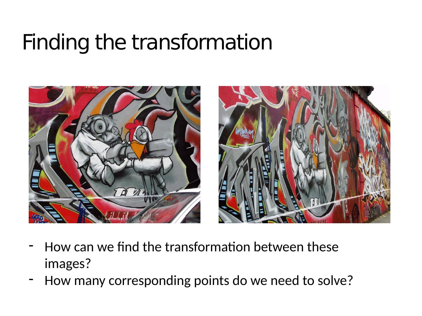 15 .Finding the transformation How can we find the transformation between these images? How many corresponding points do we need to solve?