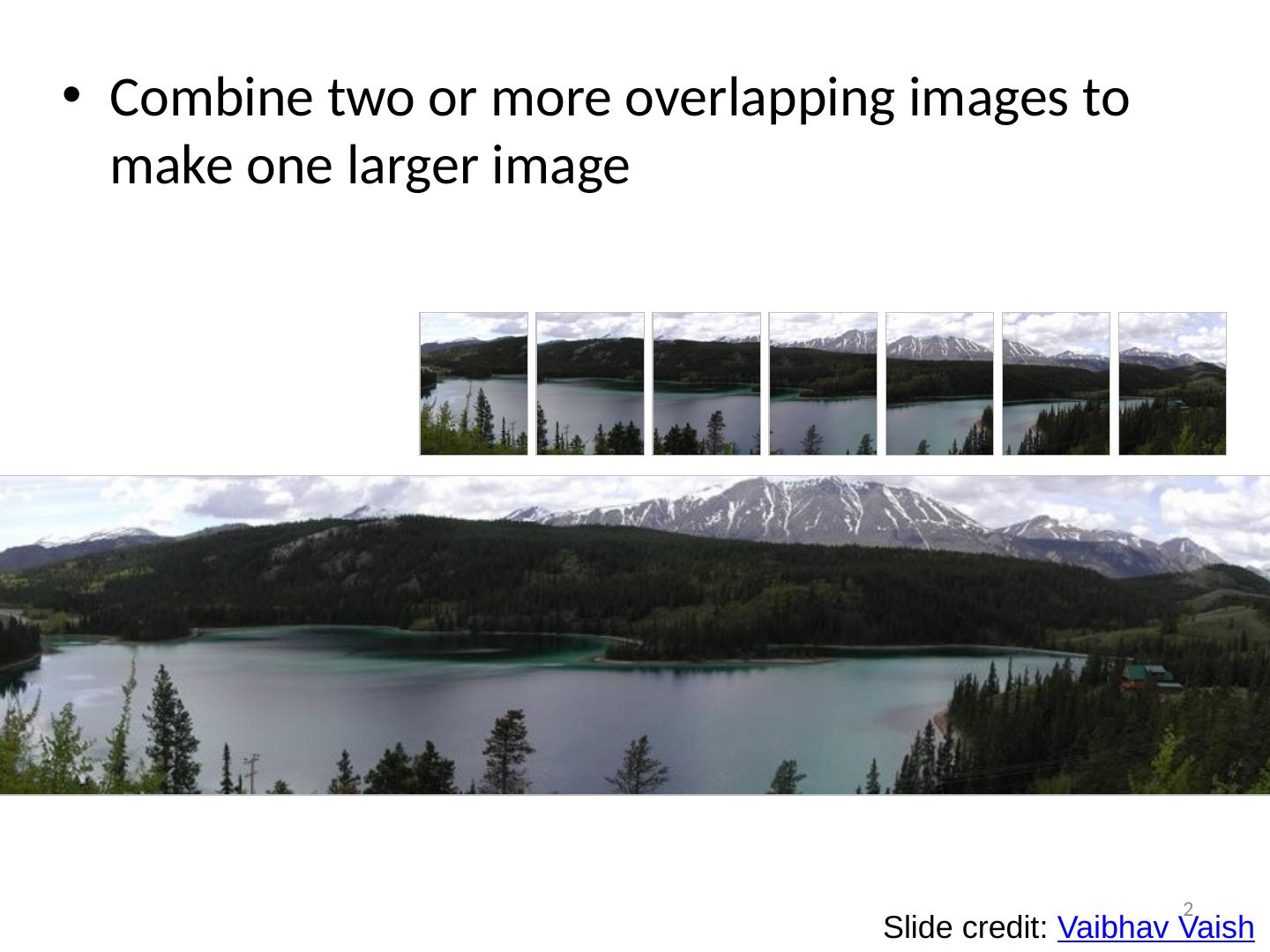 2 .Combine two or more overlapping images to make one larger image Add example Slide credit: Vaibhav Vaish 2