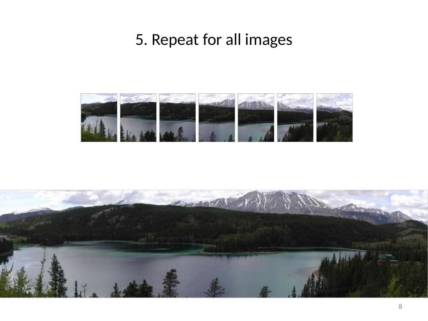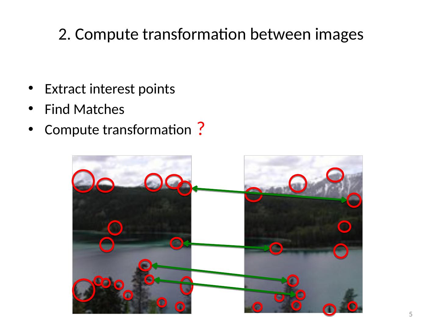 5 .2. Compute transformation between images Extract interest points Find Matches Compute transformation ? 5