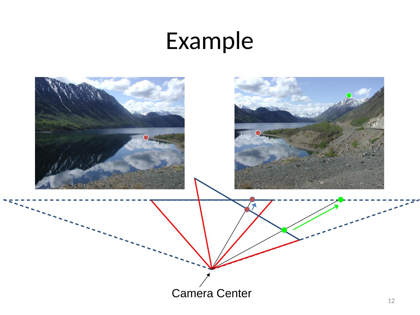 13 .Image reprojection Observation Rather than thinking of this as a 3D reprojection, think of it as a 2D image warp from one image to another 13