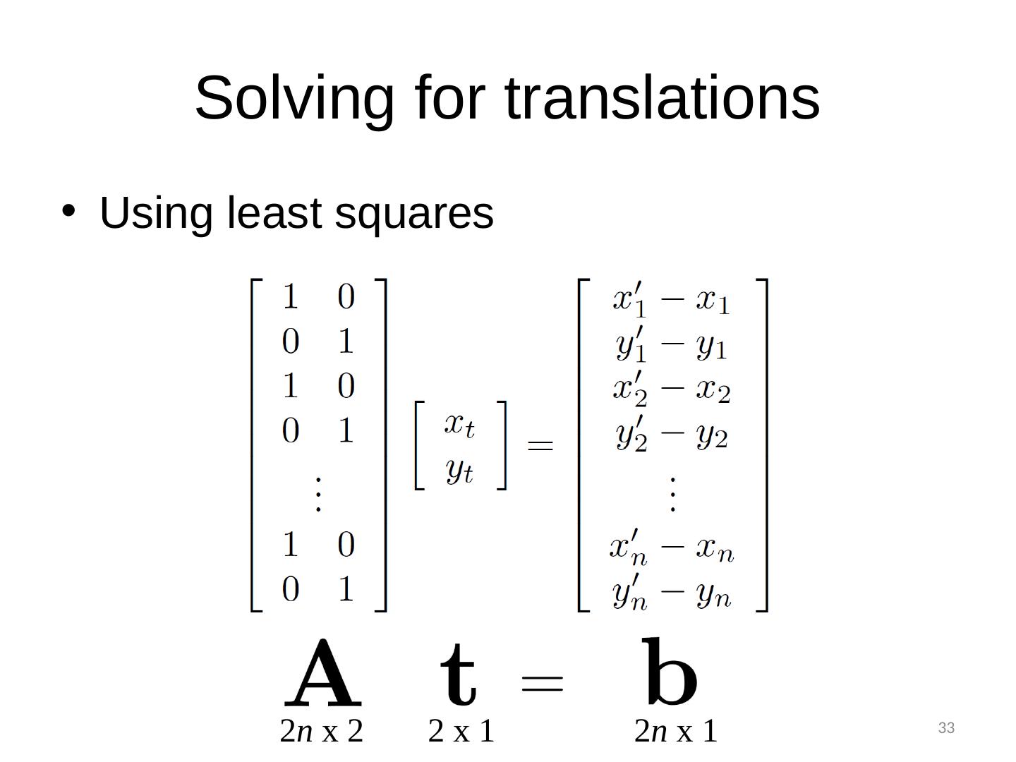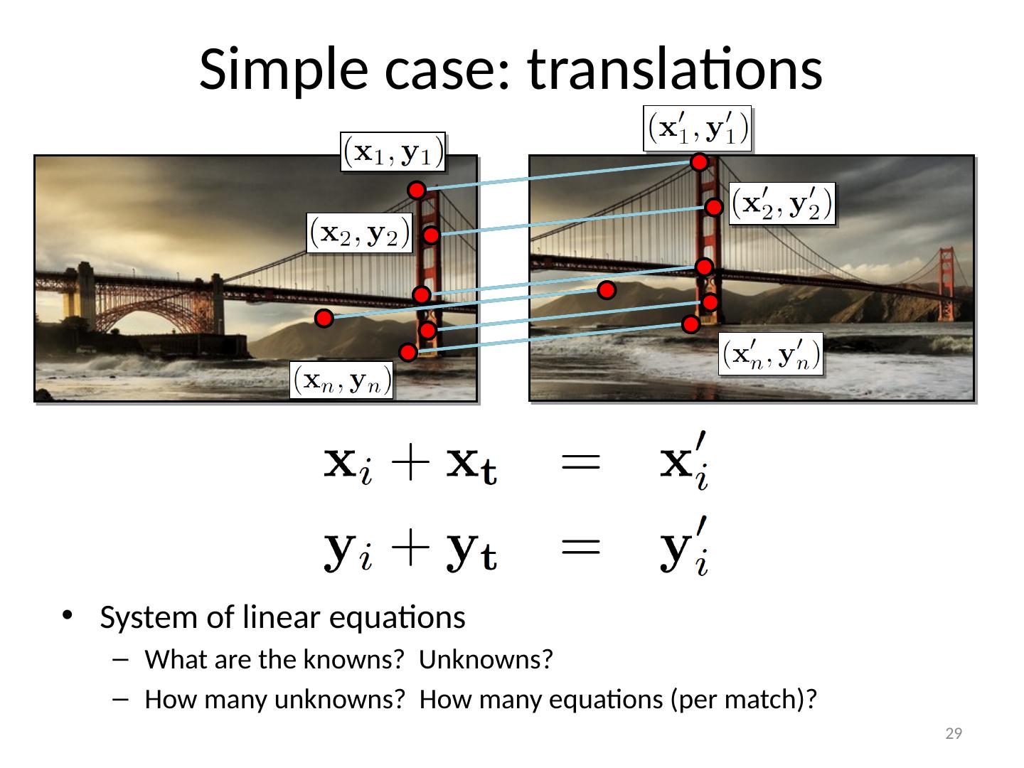 29 .Simple case: translations System of linear equations What are the knowns? Unknowns? How many unknowns? How many equations (per match)? 29