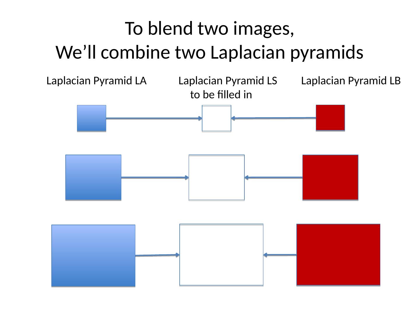 14 .To blend two images, We’ll combine two Laplacian pyramids Laplacian Pyramid LA Laplacian Pyramid LS Laplacian Pyramid LB to be filled in