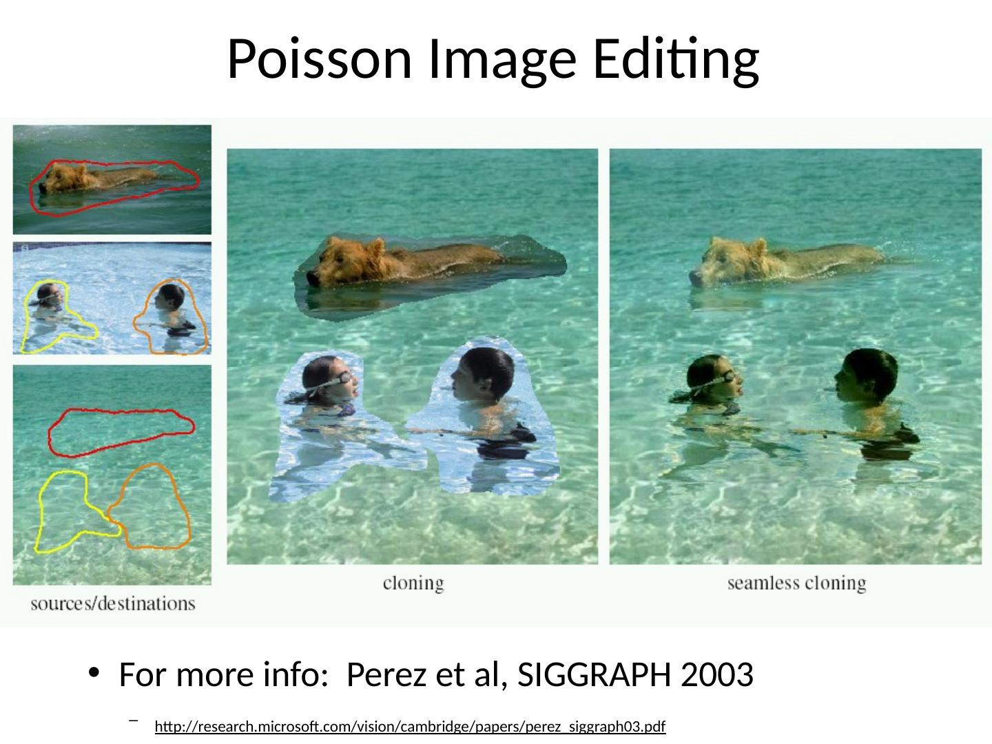 21 .Poisson Image Editing For more info: Perez et al, SIGGRAPH 2003 http://research.microsoft.com/vision/cambridge/papers/perez_siggraph03.pdf