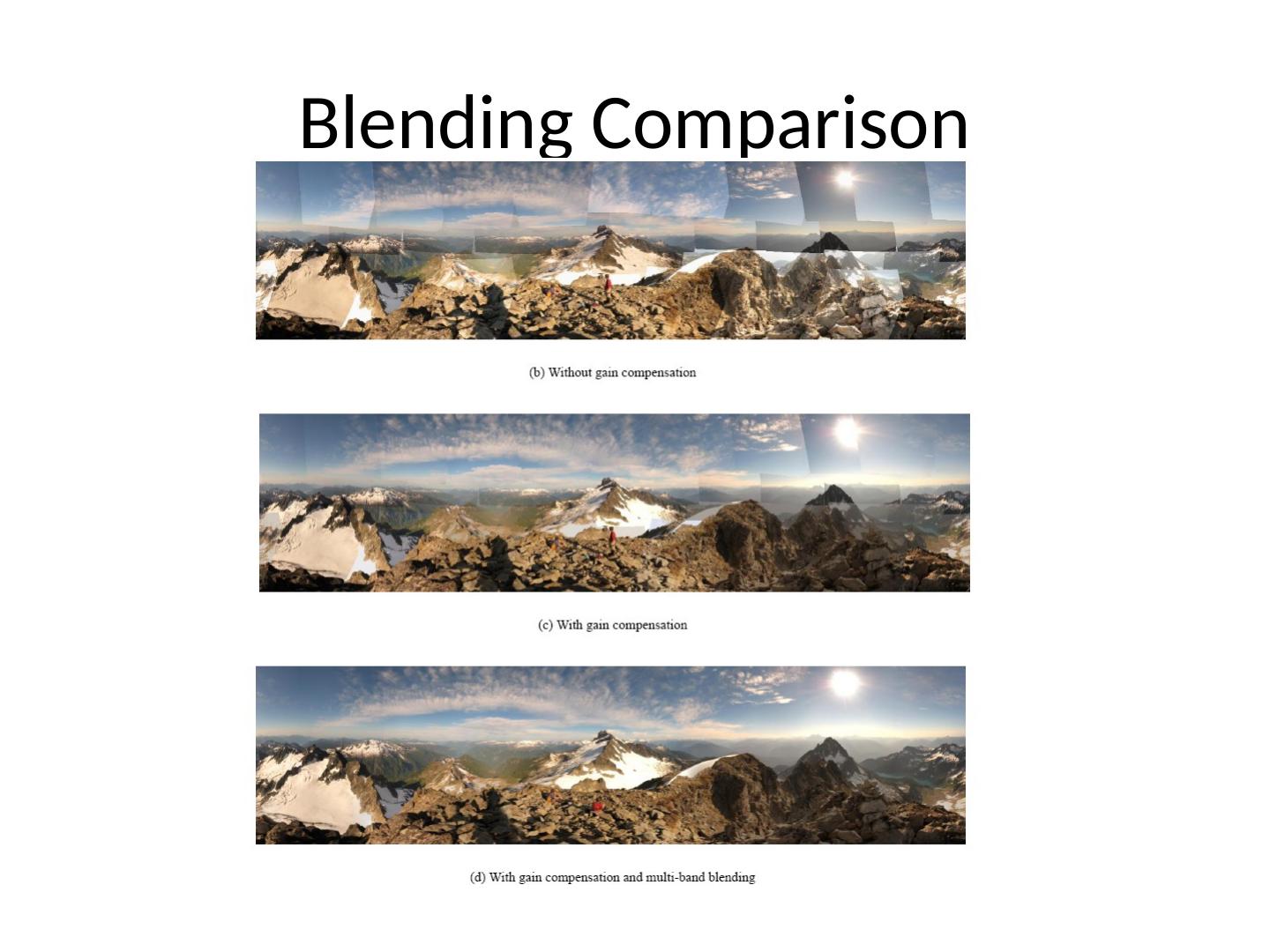 24 .Gain Compensation: Getting rid of artifacts Simple gain adjustment Compute average RGB intensity of each image in overlapping region Normalize intensities by ratio of averages