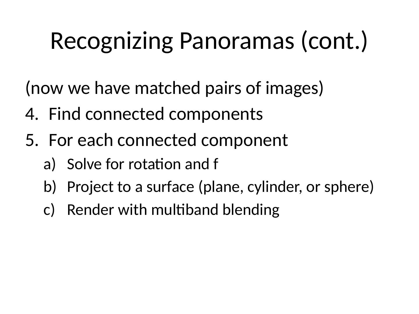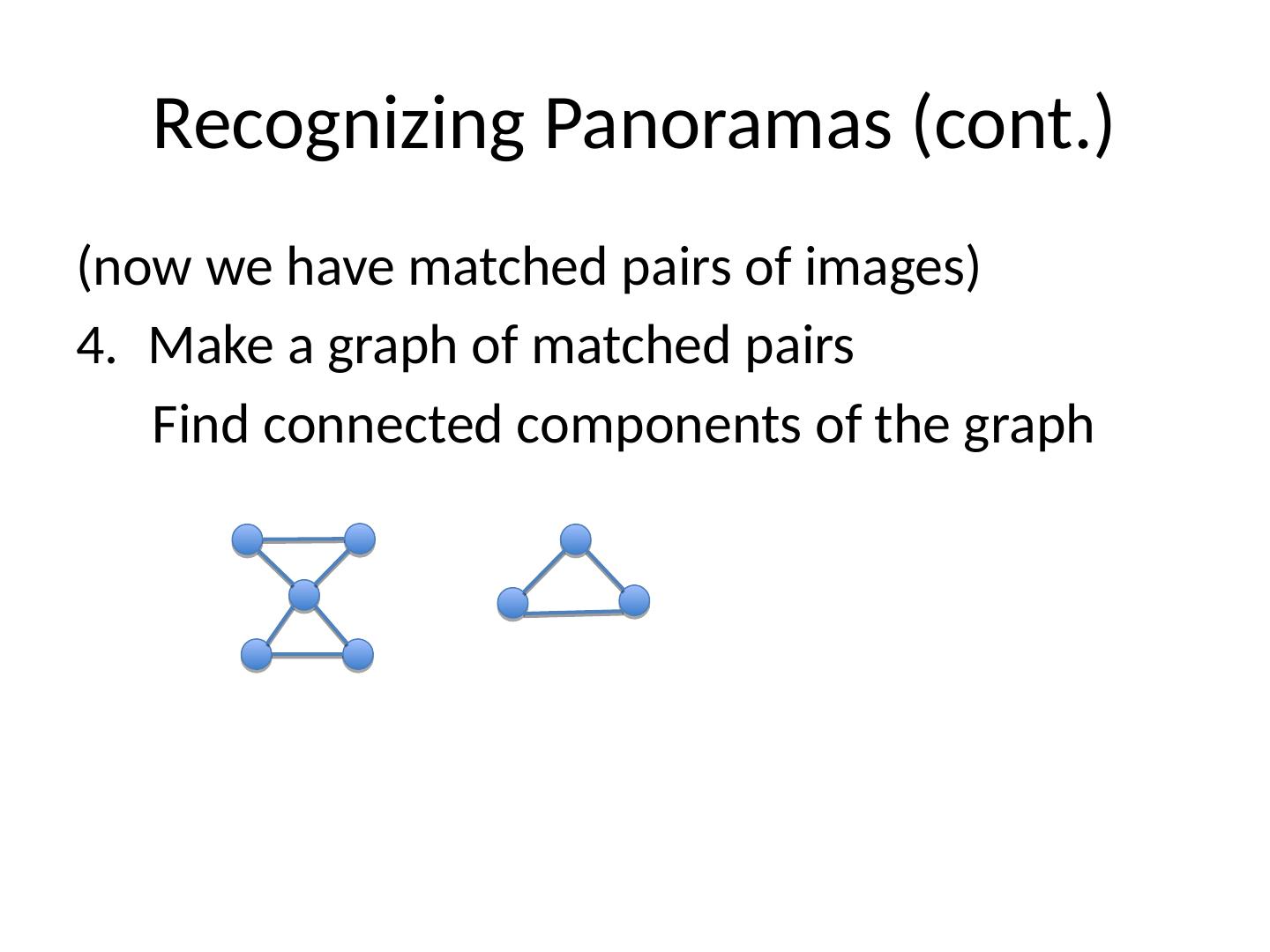 29 .Recognizing Panoramas (cont.) (now we have matched pairs of images) Make a graph of matched pairs Find connected components of the graph