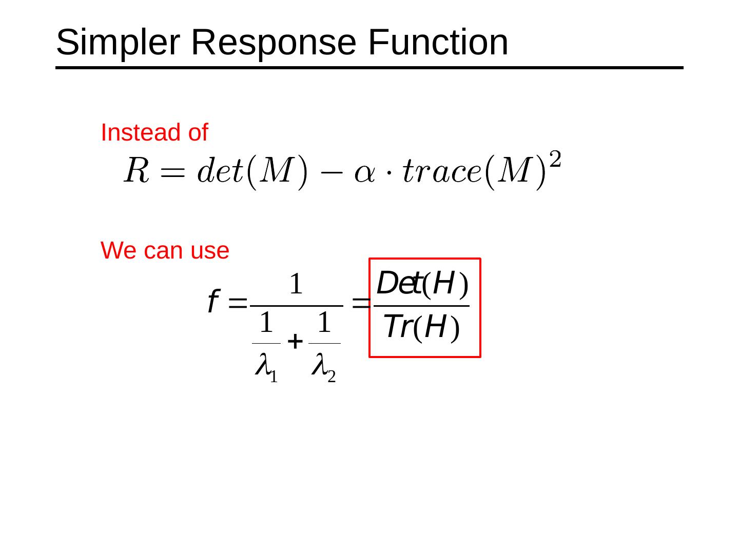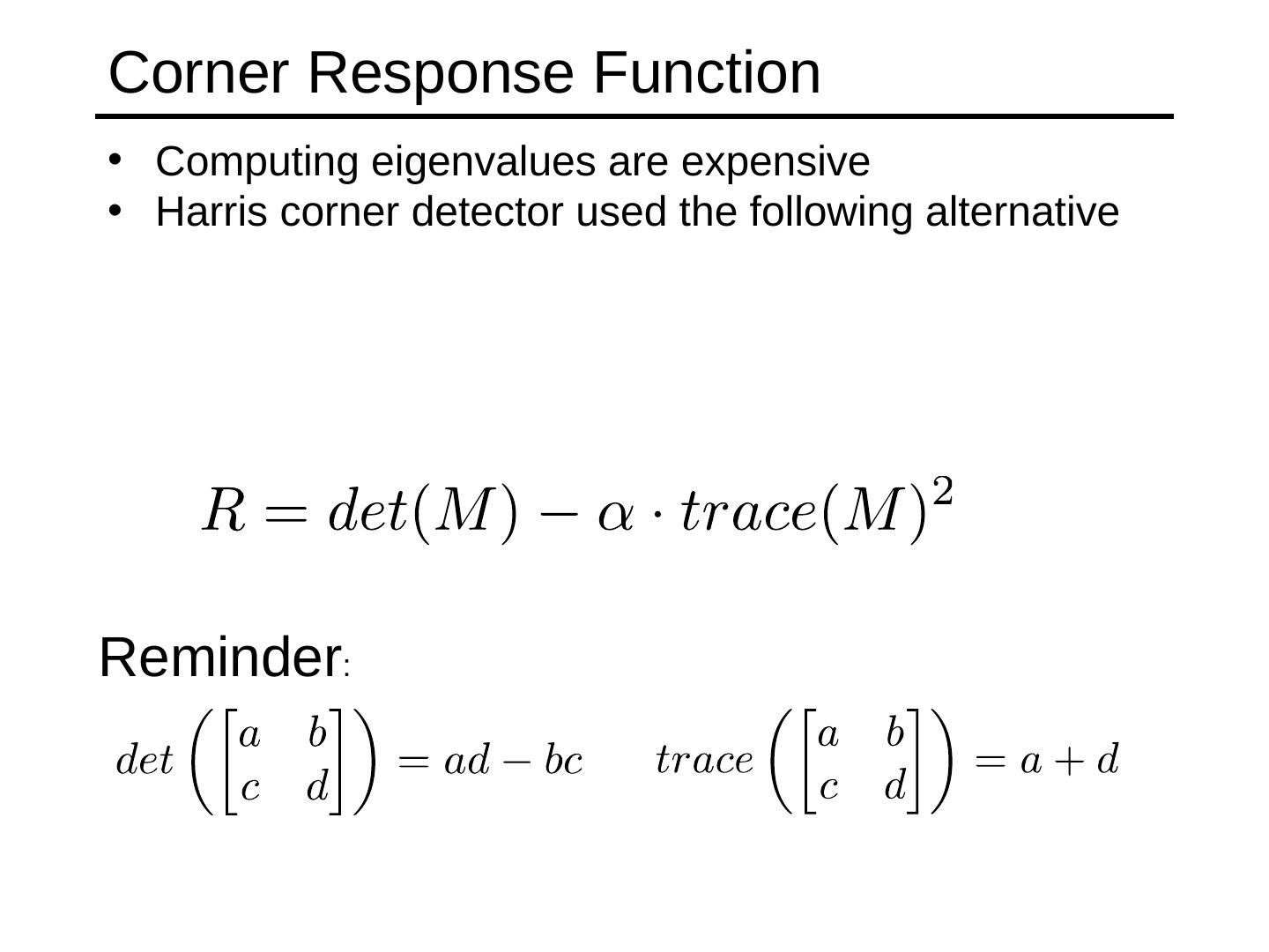11 .Corner Response Function Computing eigenvalues are expensive Harris corner detector used the following alternative Reminder :