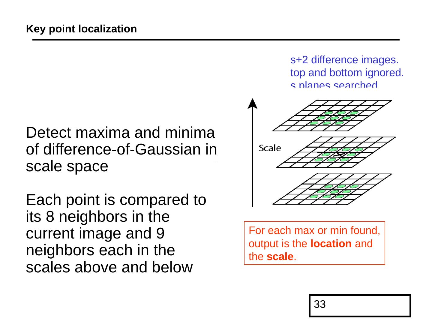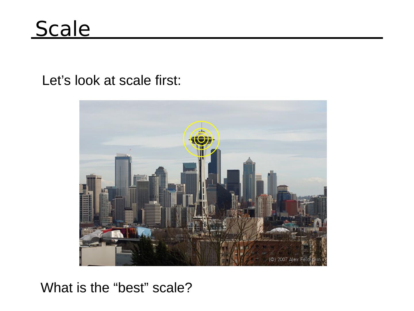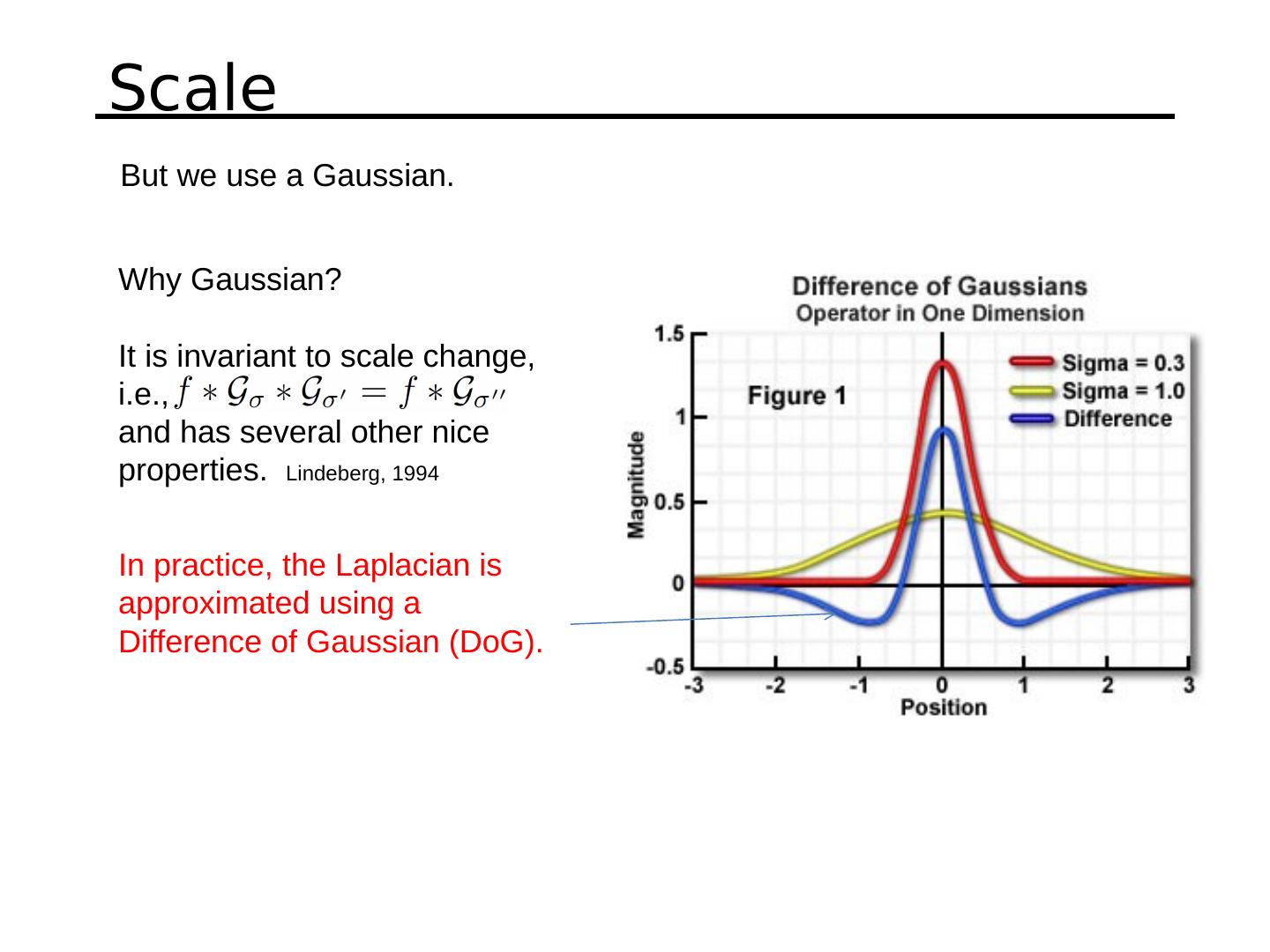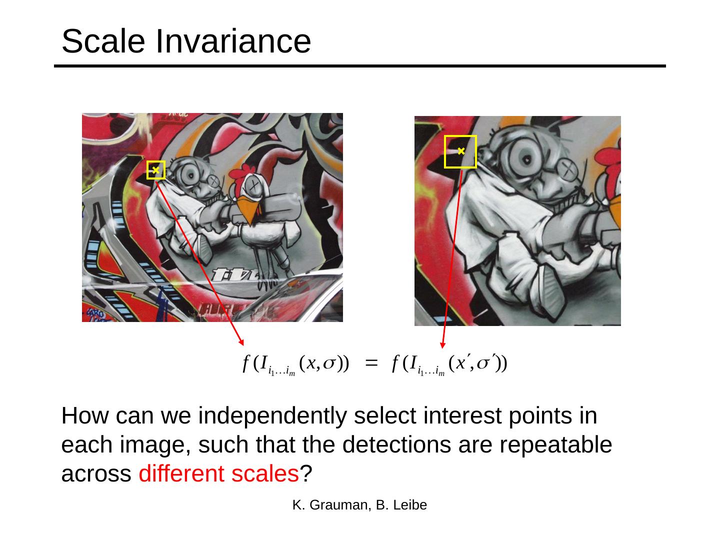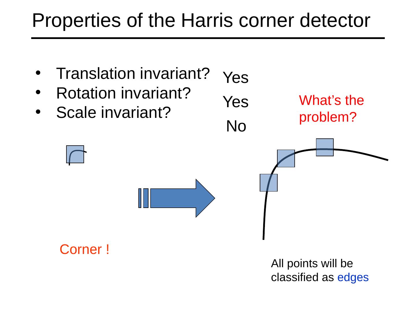 18 .Properties of the Harris corner detector Translation invariant? Rotation invariant? Scale invariant? All points will be classified as edges Corner ! Yes No Yes What’s the problem?