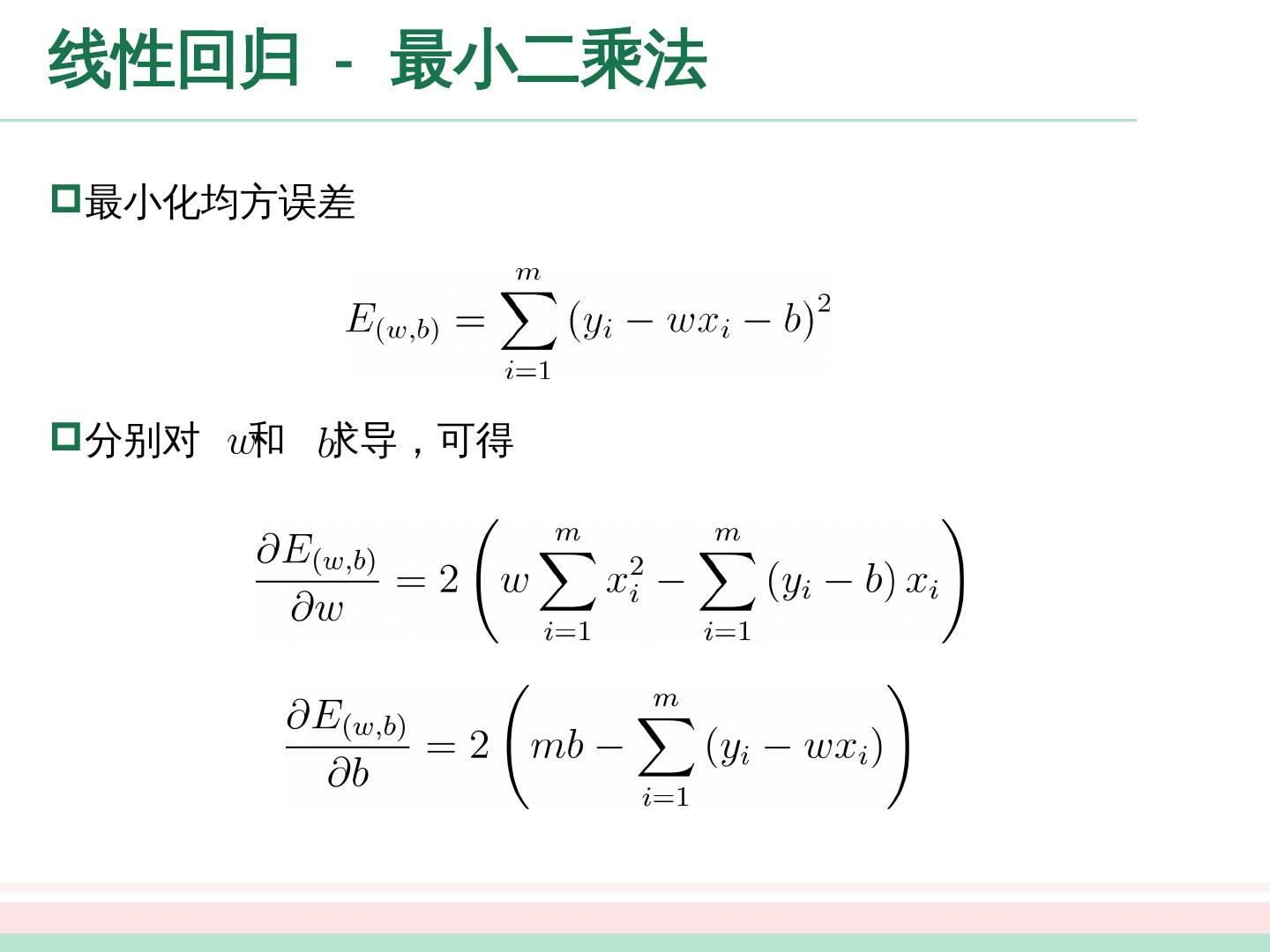 8 .线性回归 - 最小二乘法 最小化均方误差 分别对 和 求导,可得