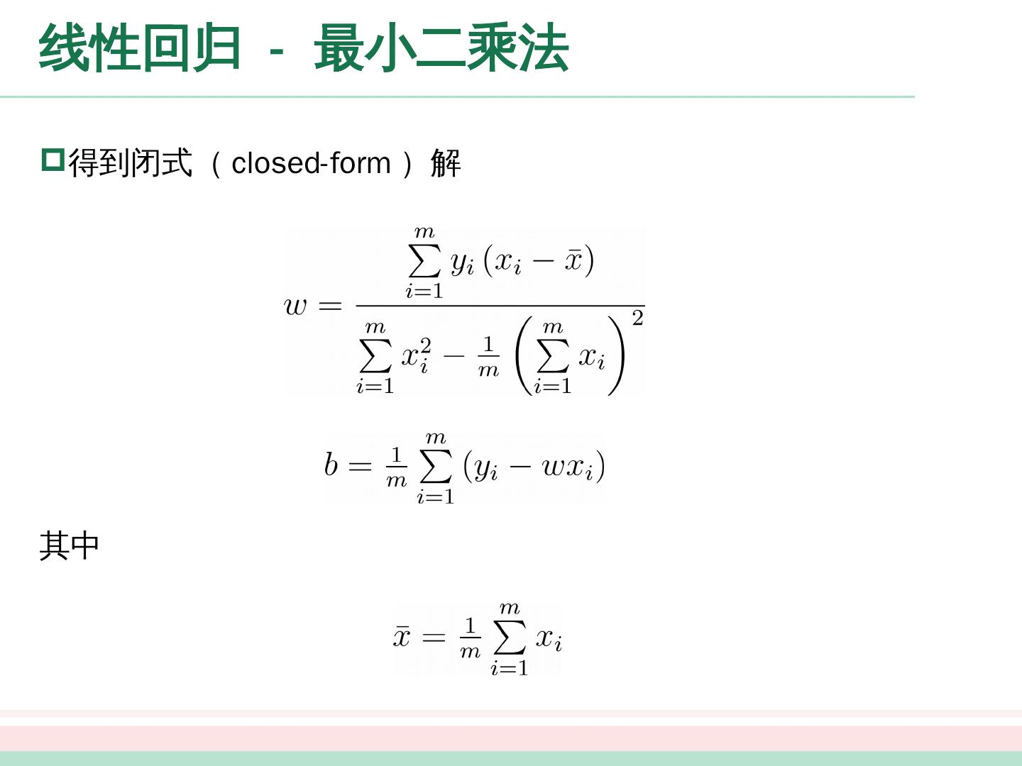 9 .线性回归 - 最小二乘法 得到闭式( closed-form )解 其中