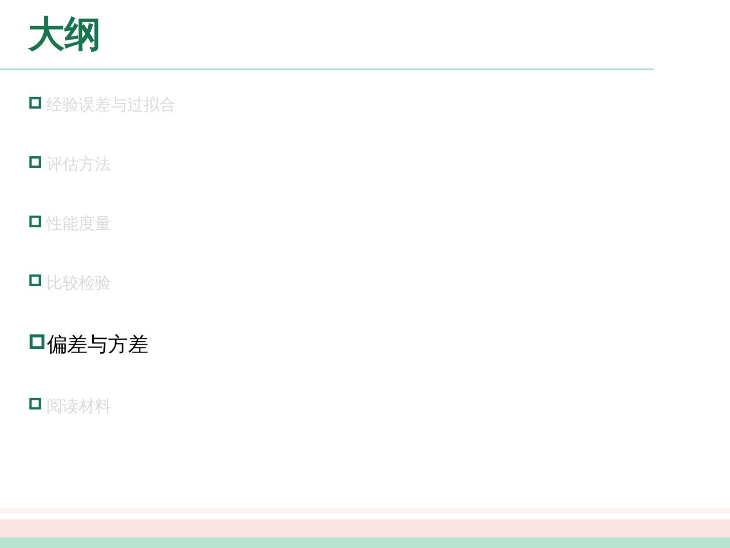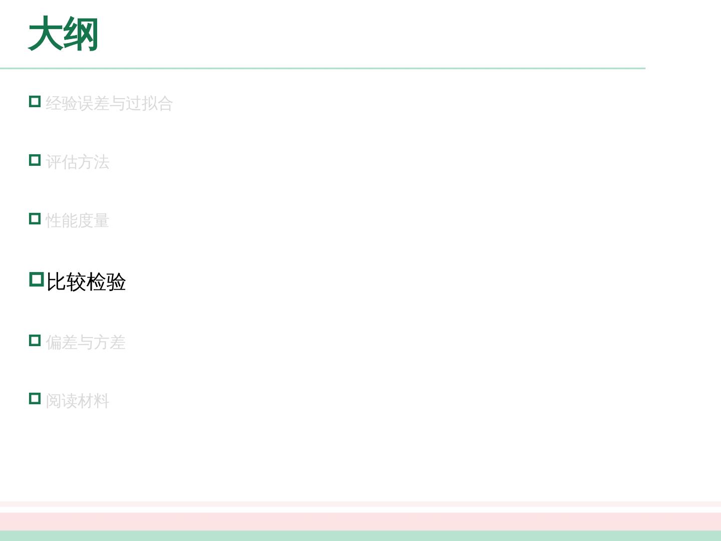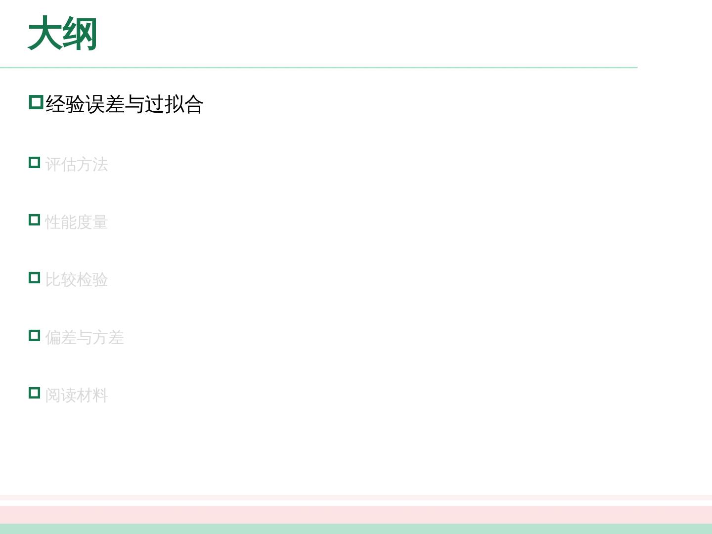 3 .大纲 经验误差与过拟合 评估方法 性能度量 比较检验 偏差与方差 阅读材料