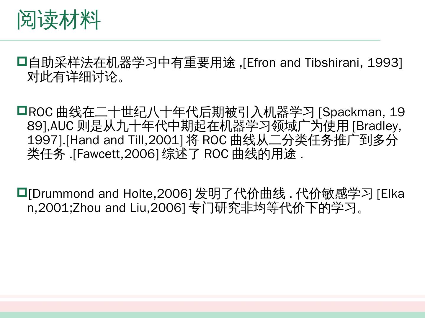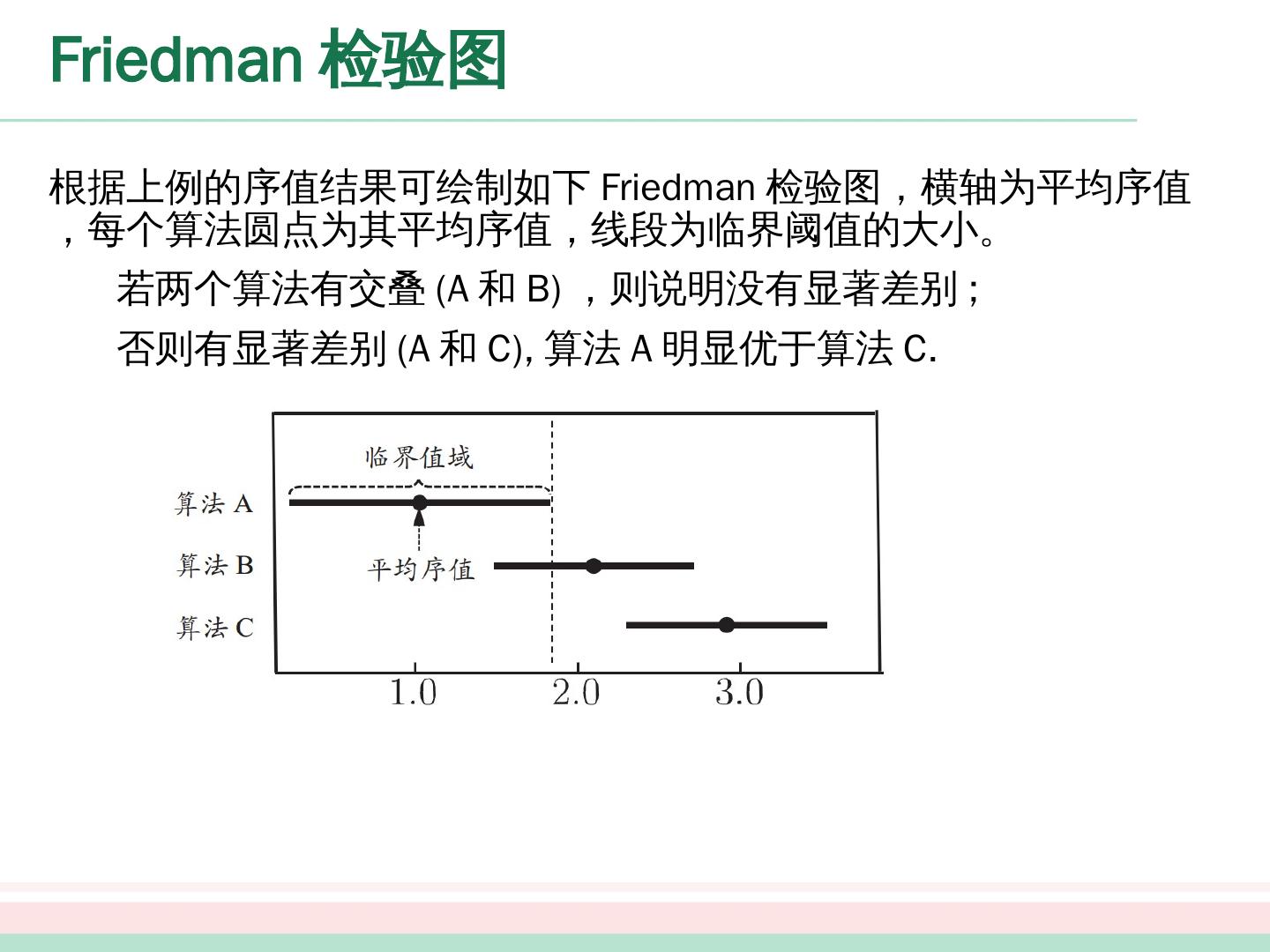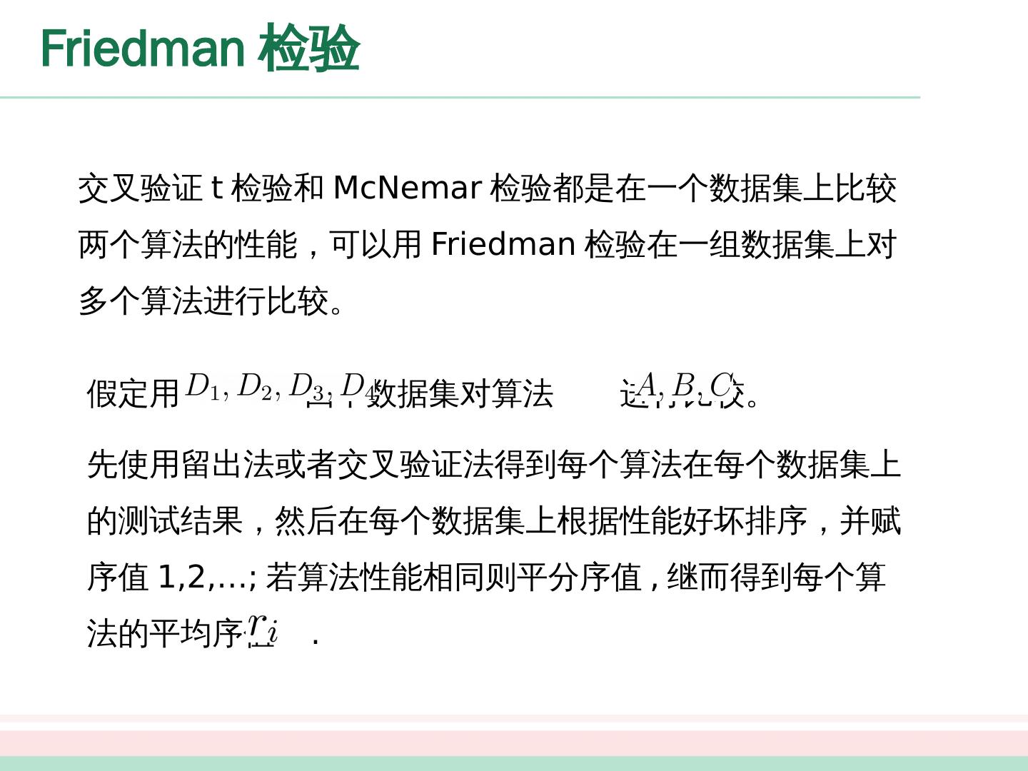 28 .交叉验证 t 检验 现实任务中,更多时候需要对不同学习器的性能进行比较 对两个学习器 A 和 B, 若 k 折交叉验证得到的测试错误率分别为 和 ,可用 k 折交叉验证“成对 t 检验”进行比较检验。若两个学习器的性能相同,则他们使用相同的训练 / 测试集得到的测试错误率应相同,即 .