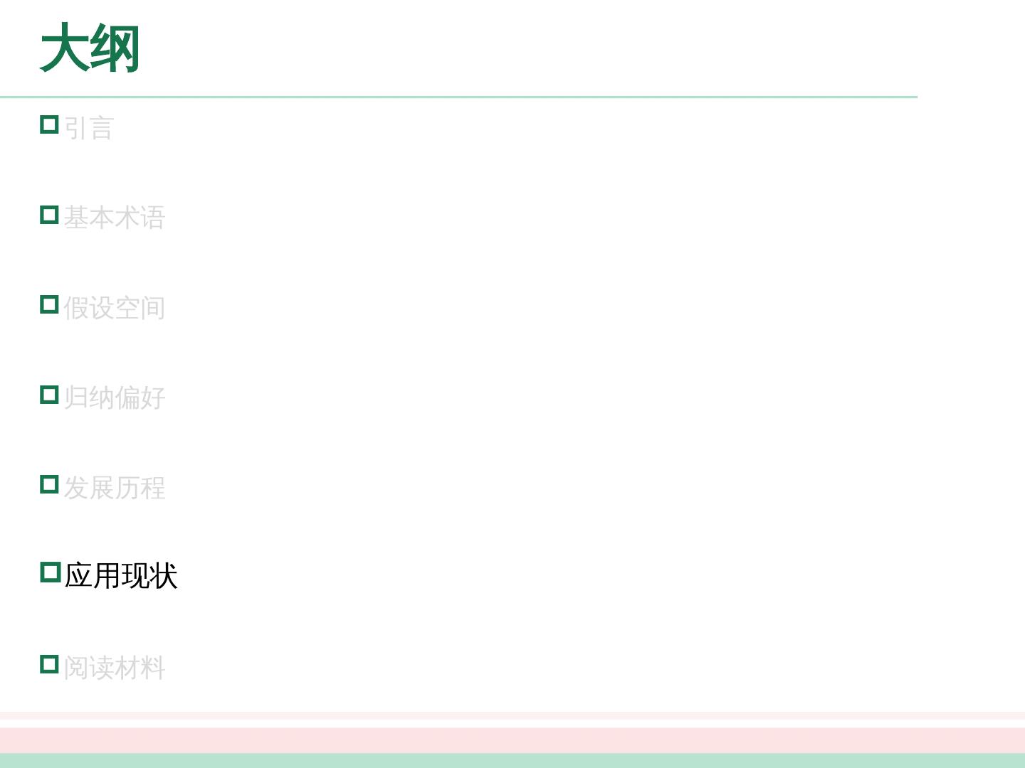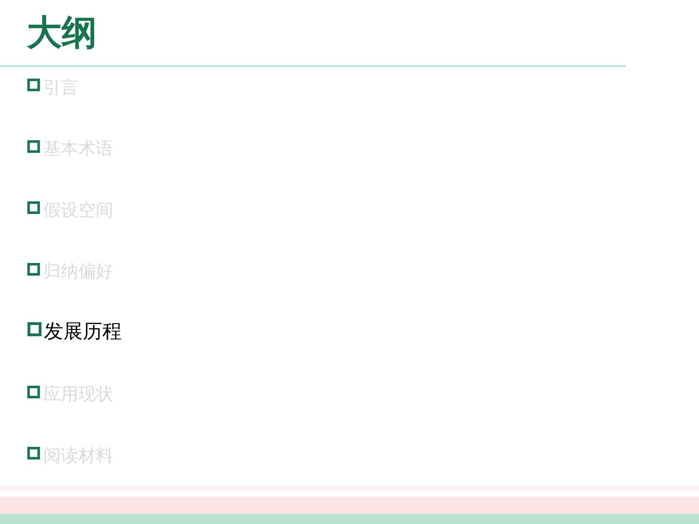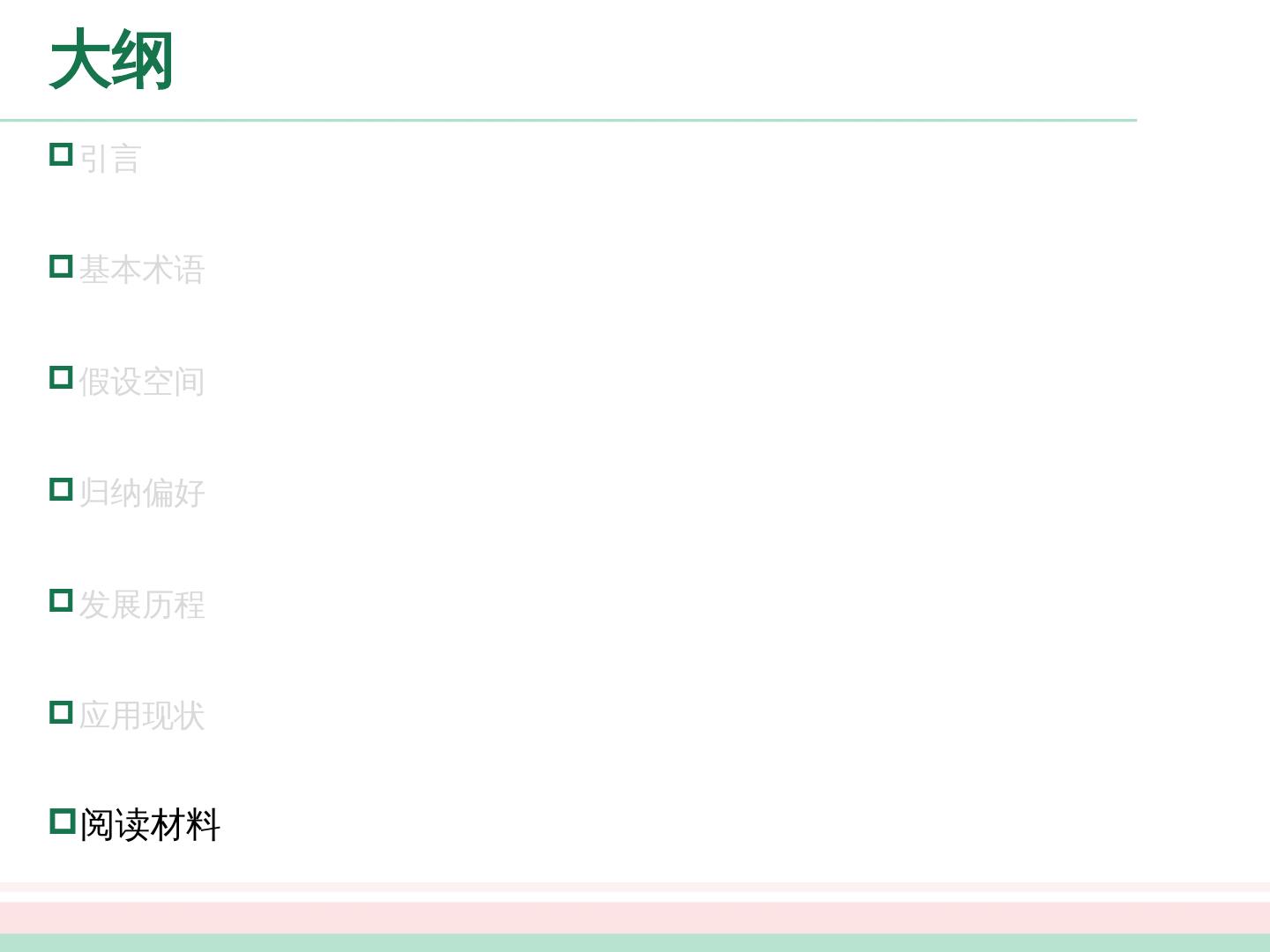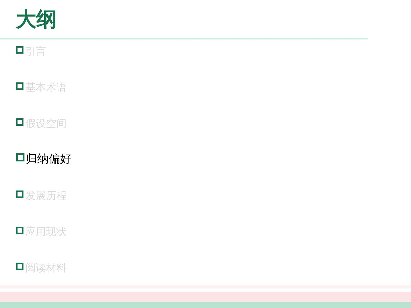 3 .大纲 引言 基本术语 假设空间 归纳偏好 发展历程 应用现状 阅读材料