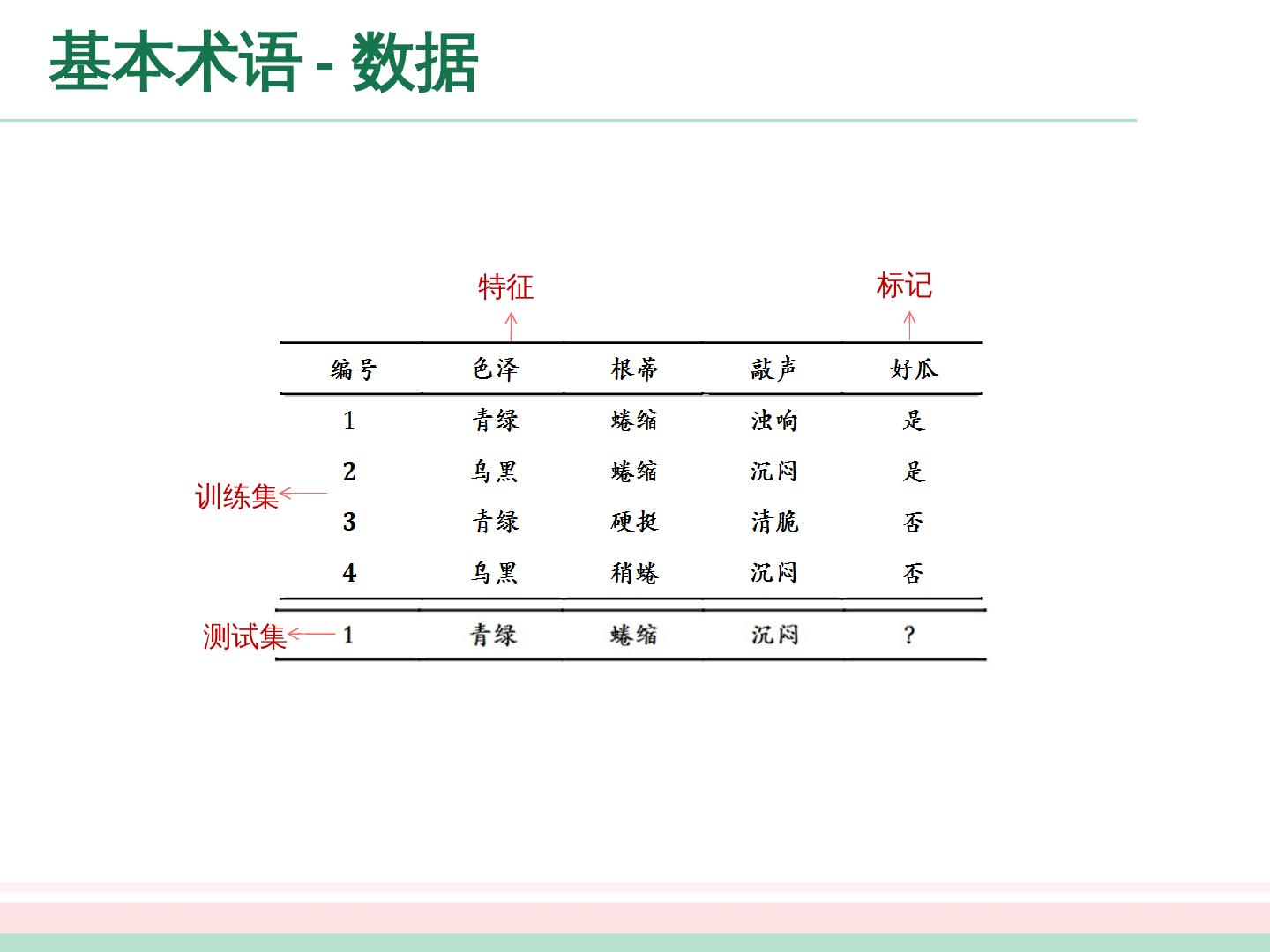 8 .基本术语 - 数据 训练集 测试集 特征 标记