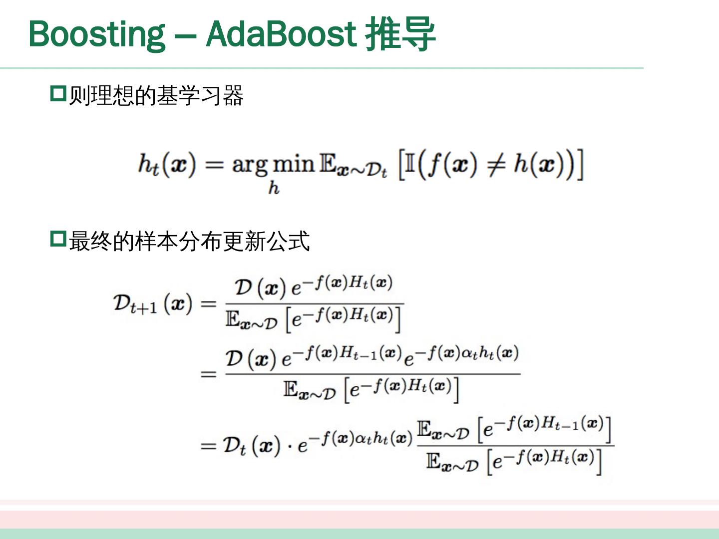 19 .Boosting – AdaBoost 推导 最终的样本分布更新 公式 则理想的基学习器