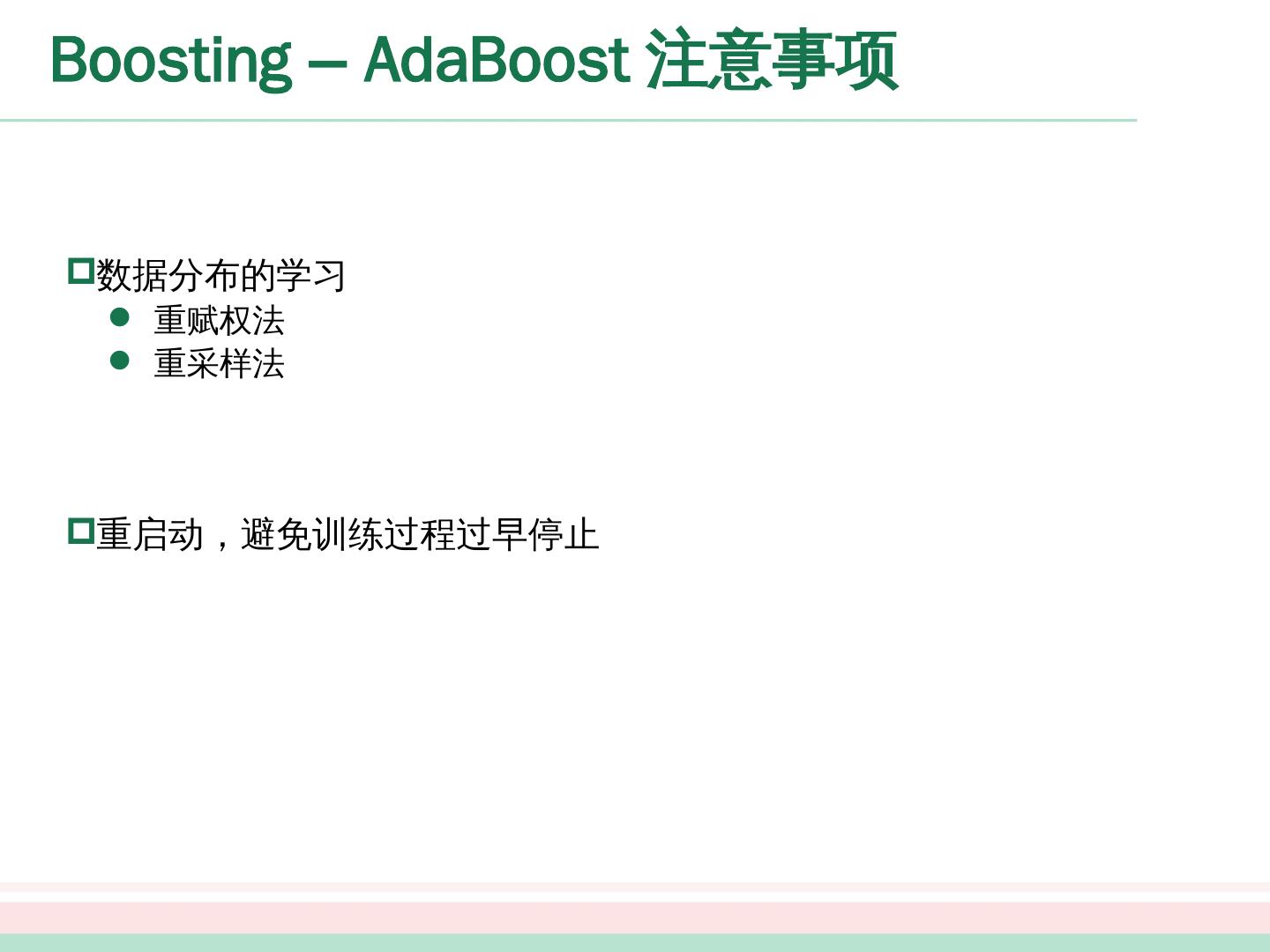 20 .Boosting – AdaBoost 注意事项 数据分布的学习 重赋权法 重采样法 重启动,避免训练过程过早停止