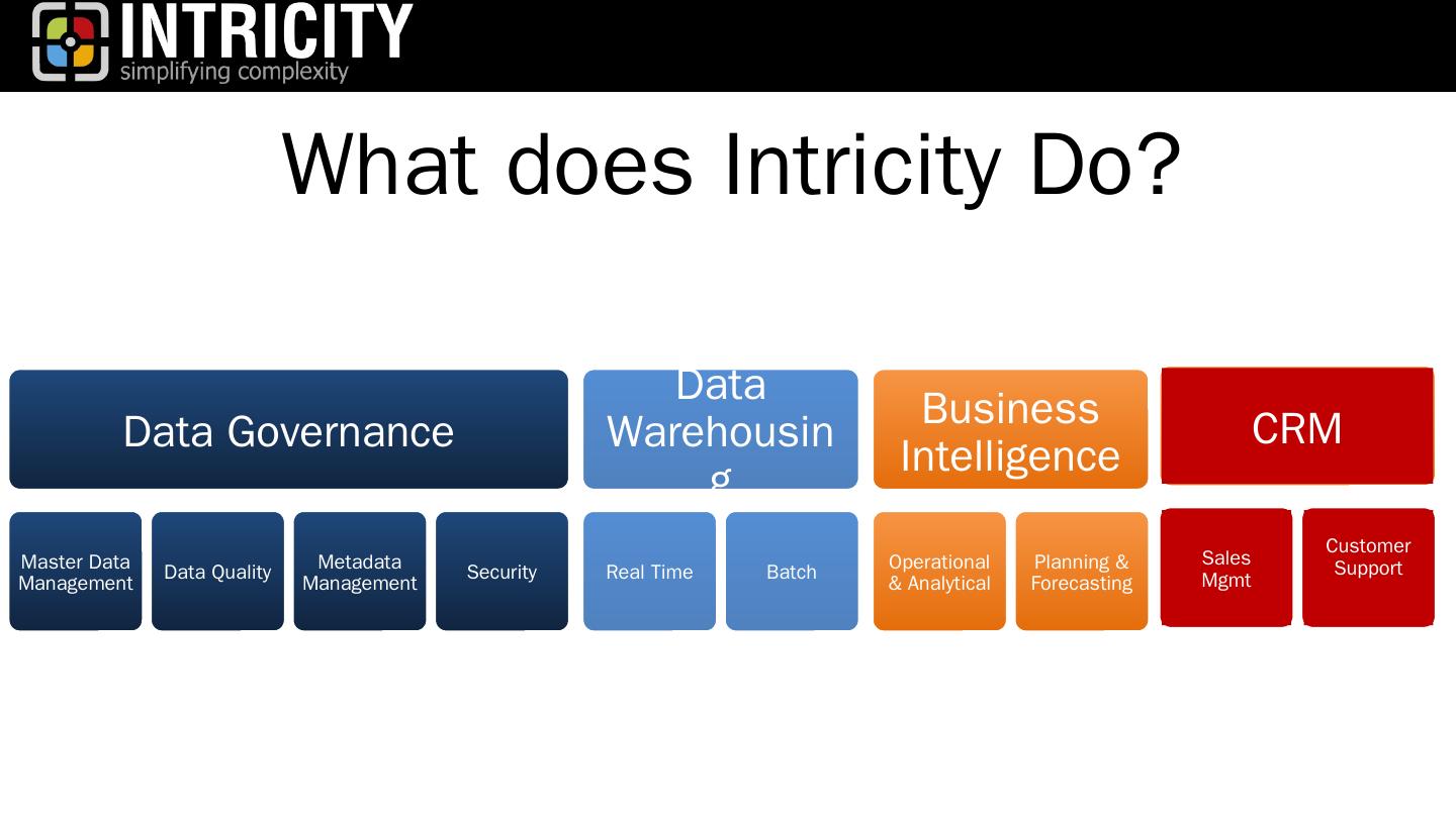 Data Governance. Master Data Management. Data Quality. Metadata Management. Security. Data Warehousing. Real Time. Batch. Business Intelligence.