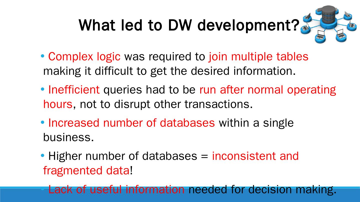 “A Data Warehouse (DW) is simply a consolidation of data from a variety of sources that is designed to support strategic and tactical decision making. Its main ...