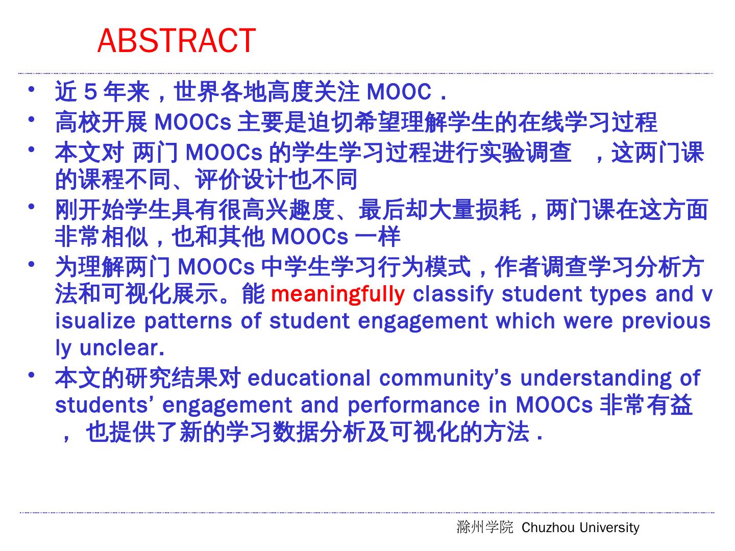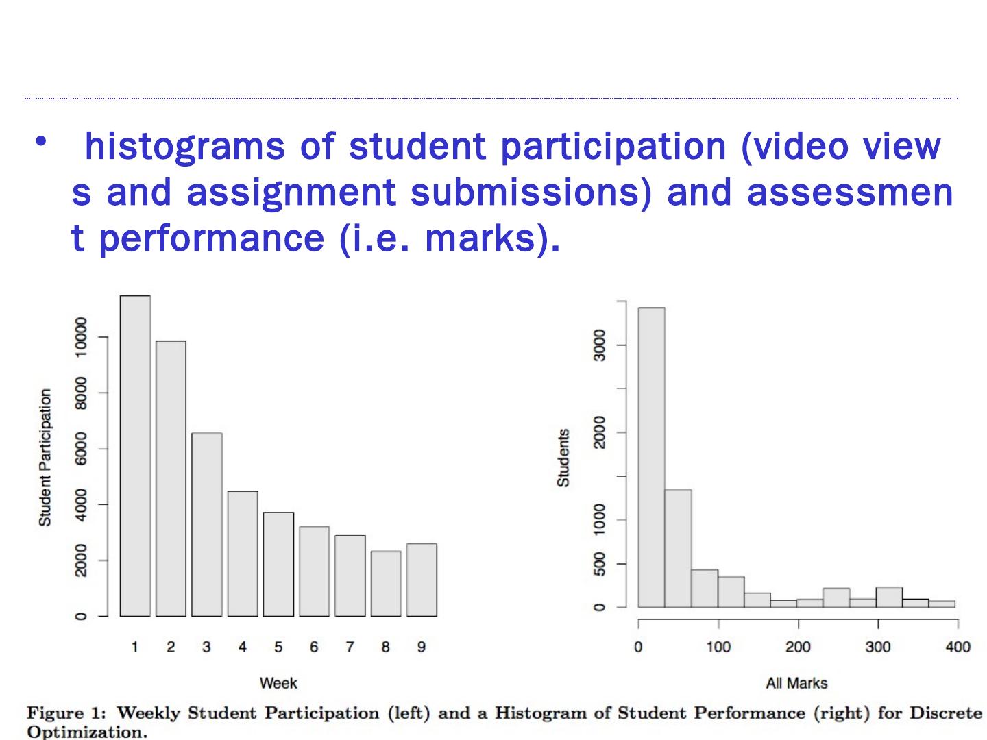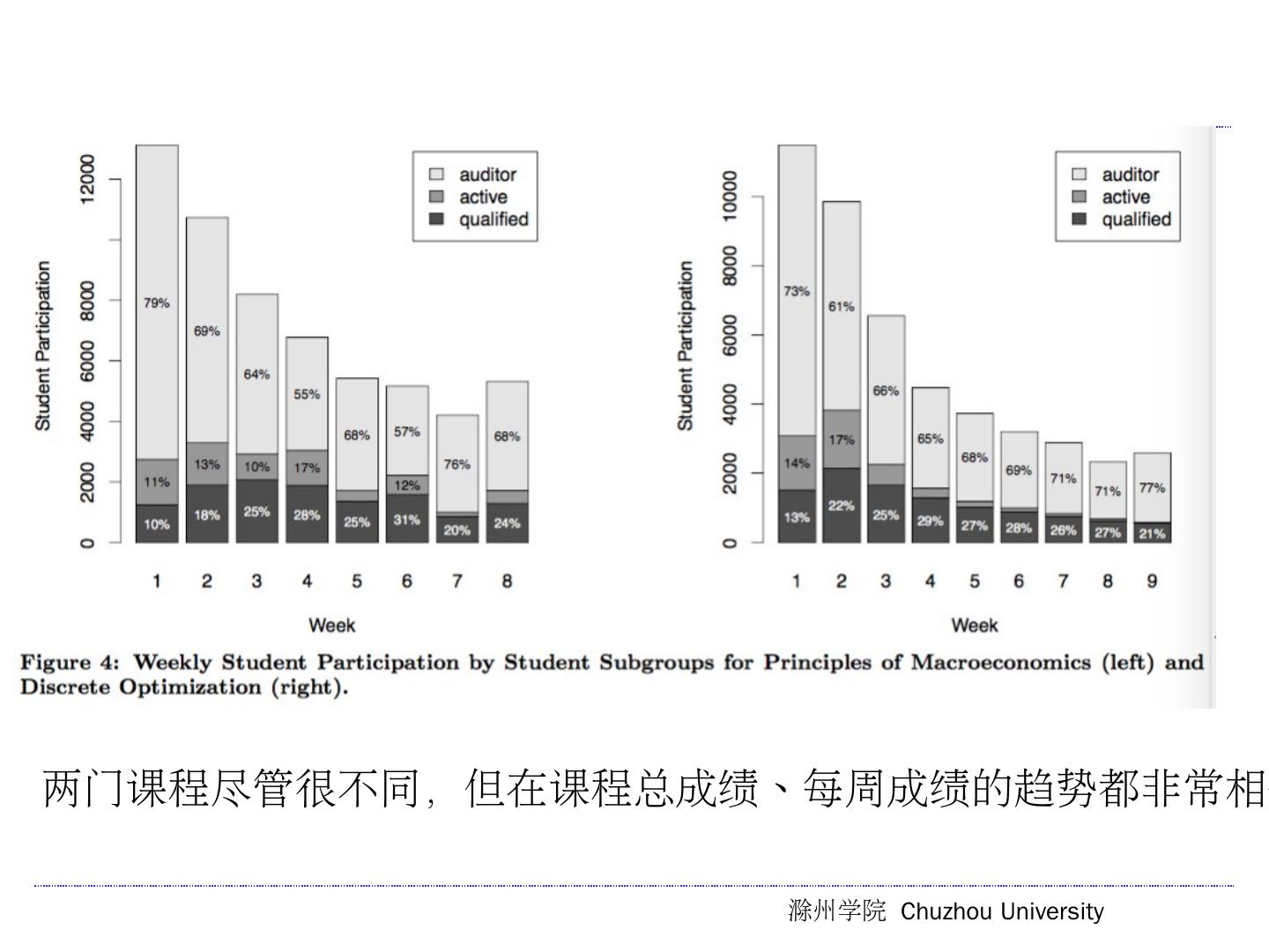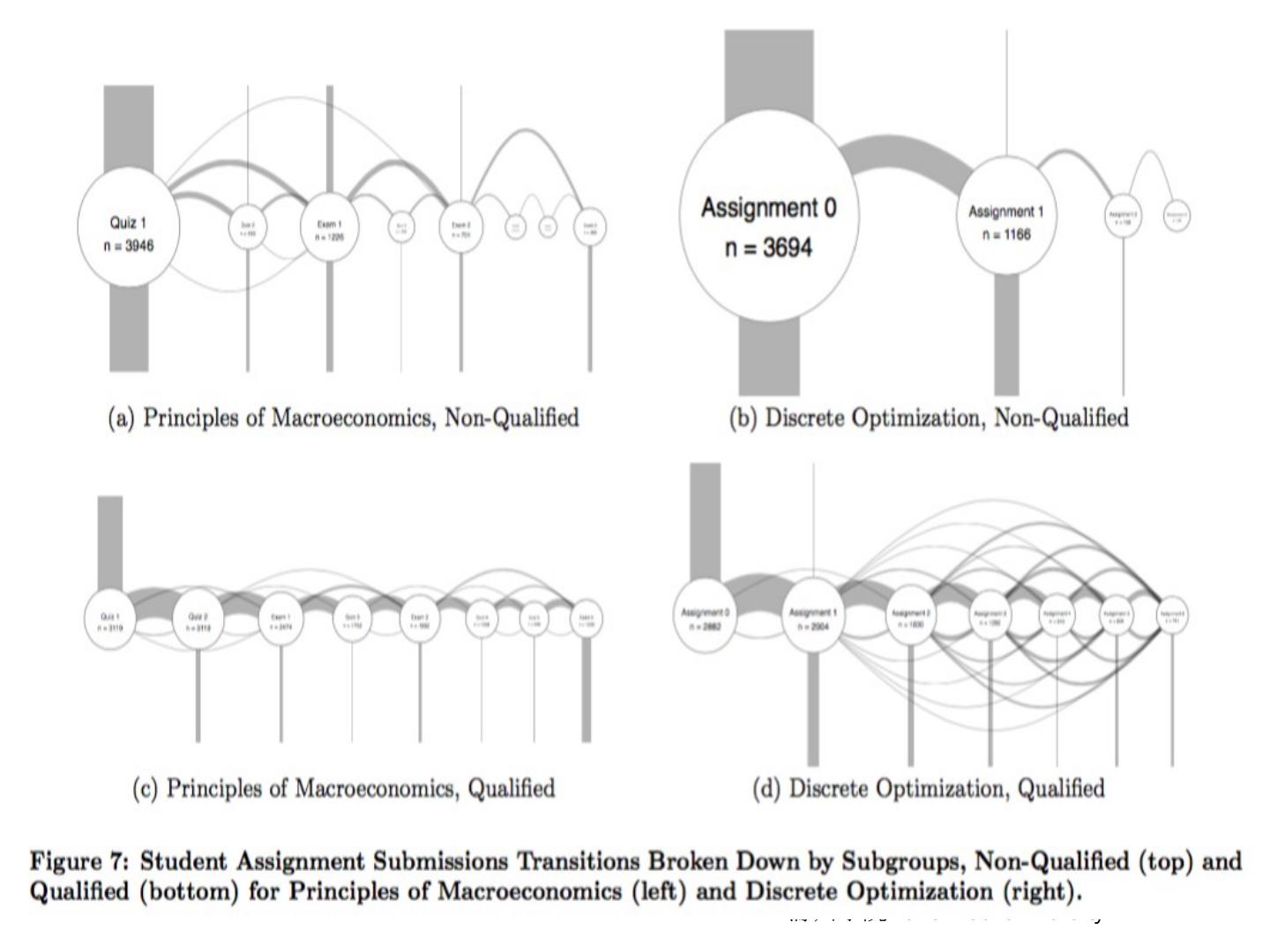 Visualizing patterns of student engagement and performance in MOOCs ... which had quite different and distinctive curriculum and assessment designs. ... 两门课的模式非常类似,尽管内容和评价设计不同(Fig2 和FIg4) (可视化的曲线类似) ...