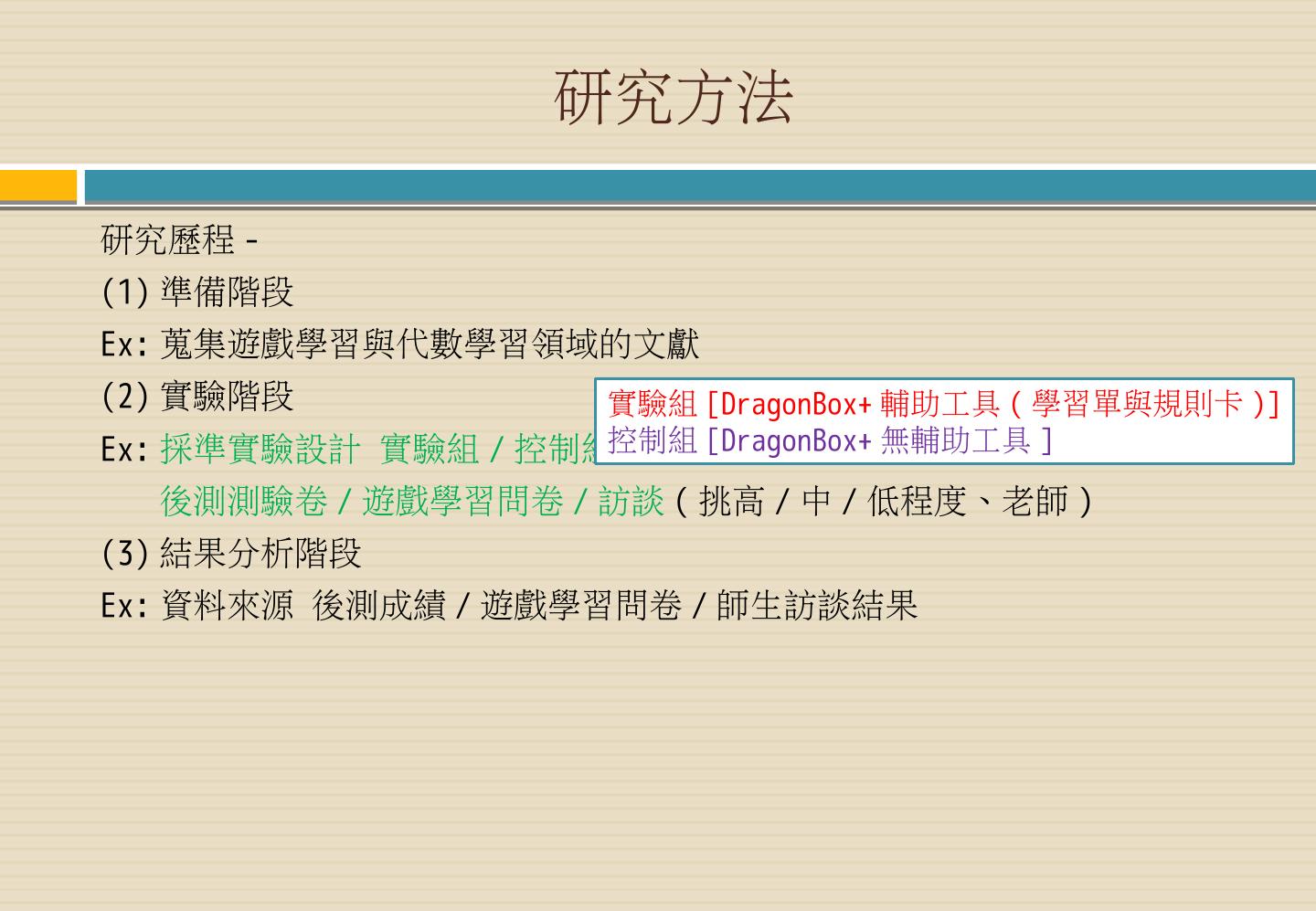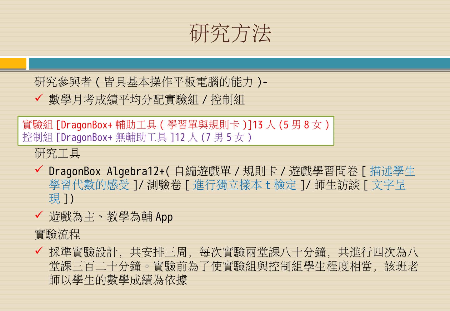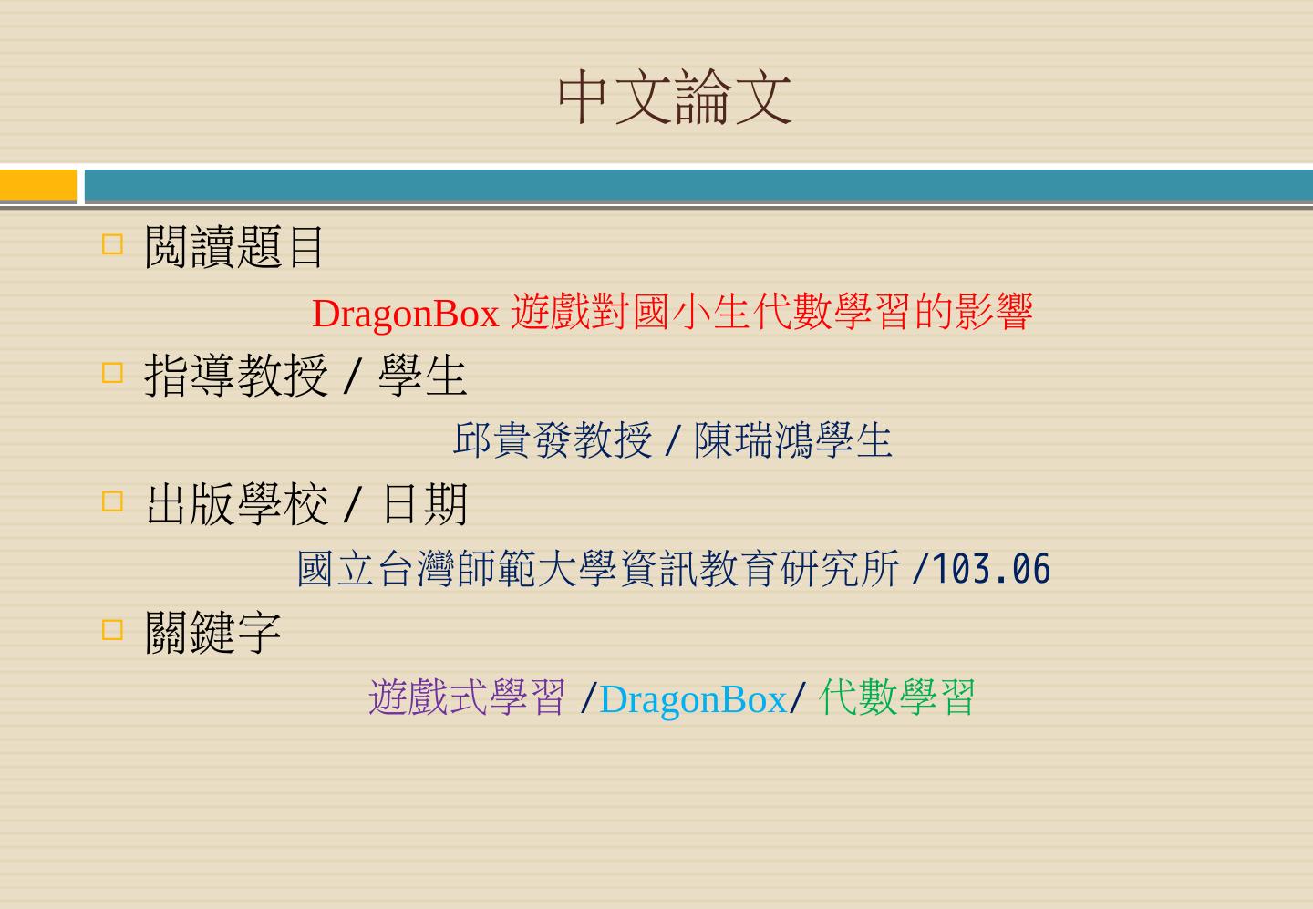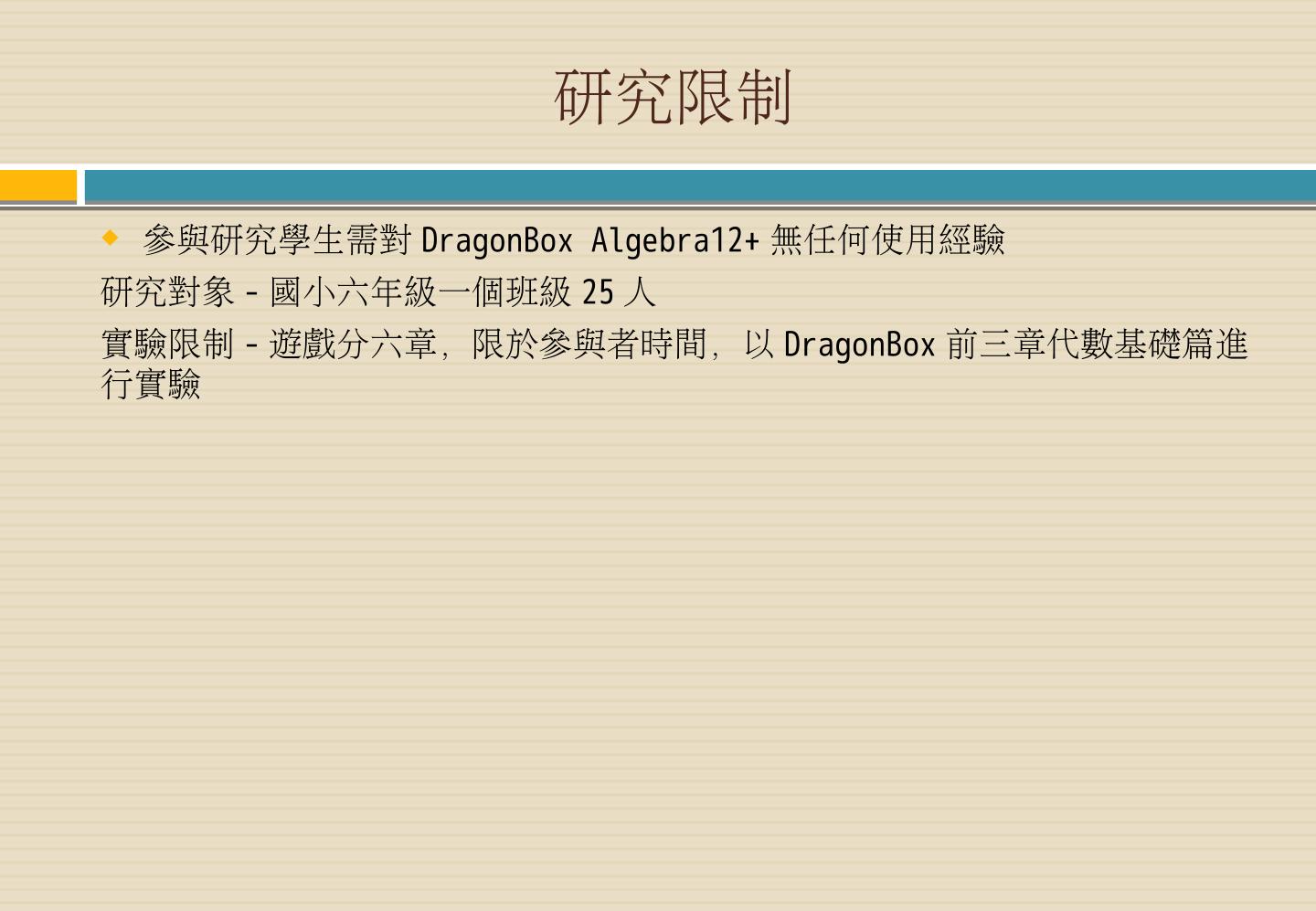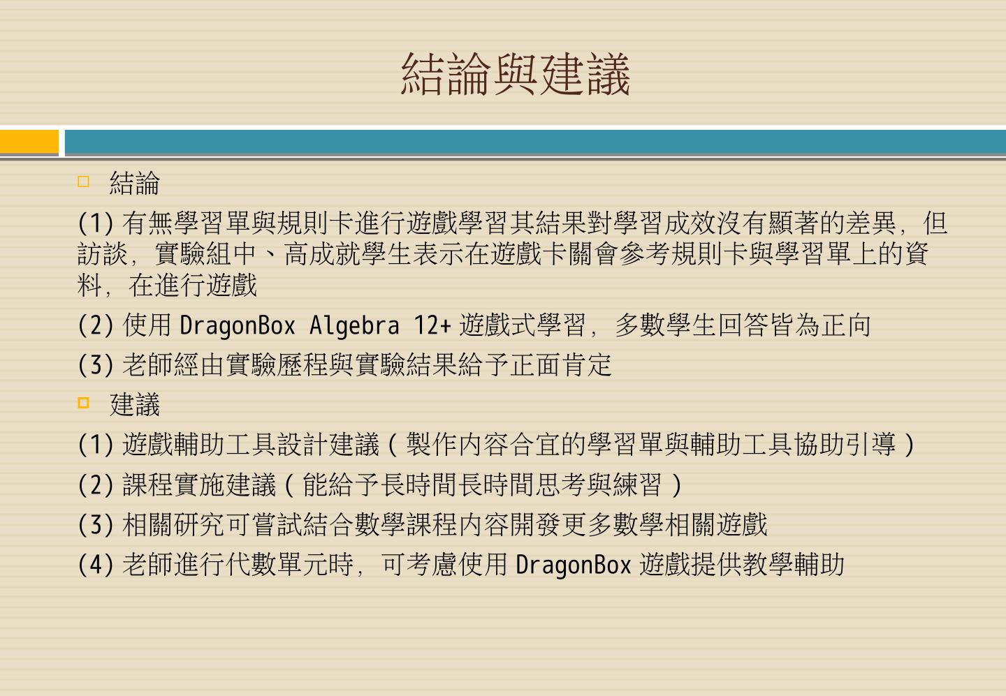 DragonBox遊戲對國小生代數學習的影響 數位整合傳播研究 指導教授 ...