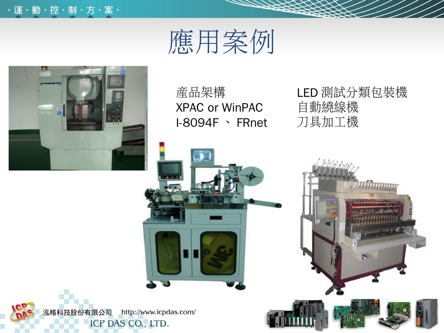 我司運動控制方案目前˙已經應用在各種領域:如XY兩軸平台、三軸量測儀器、LCD點膠機/修補機/檢測機、取放機、繞線機、半導體設備、各類包裝機.