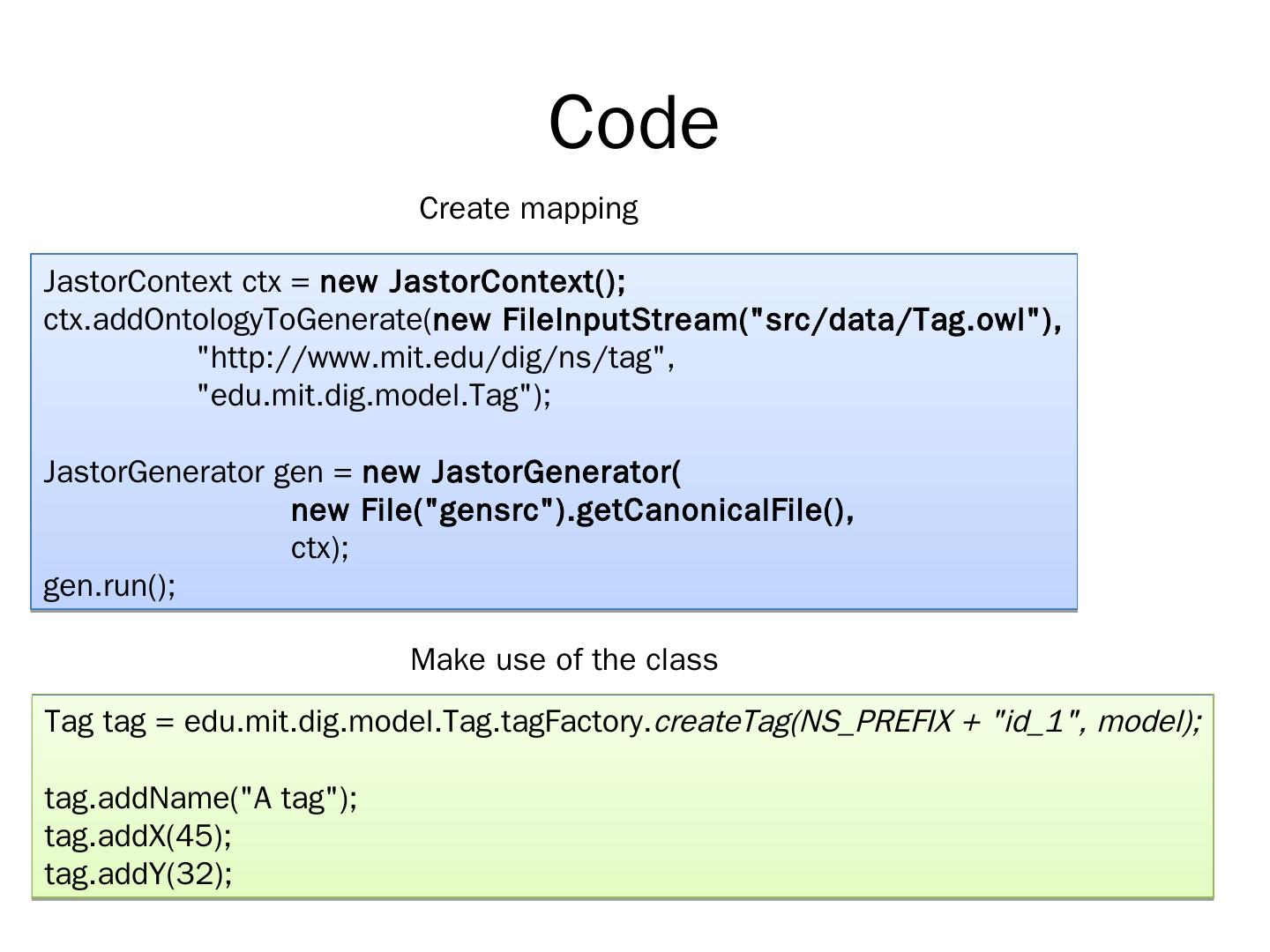 Fuming Shih. Oct 12. Java Libraries. Jena - Java API for semantic web applications; Jastor – typesafe, Ontology Driven RDF Access from Java.