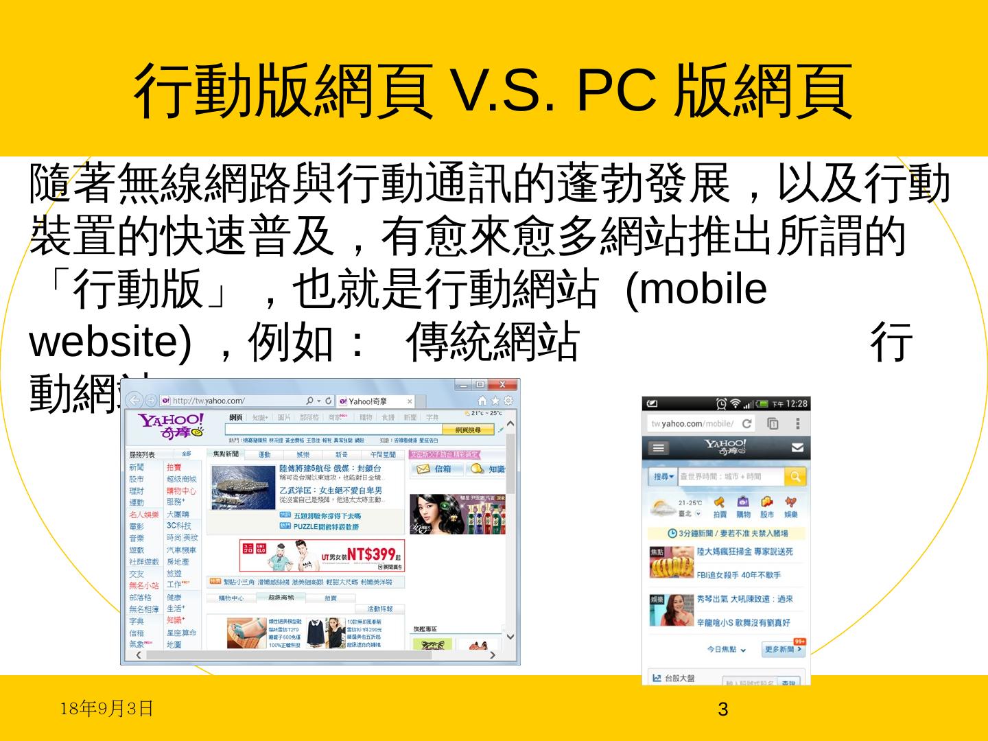 行動版網頁v.s. PC版網頁; 行動版網頁設計原則; 回應式網頁設計技巧; 實例 ... 快速架站懶人包- webpage 網站模版; HTML5 Zero 免費響應式網頁設計模版、佈景主題 ...