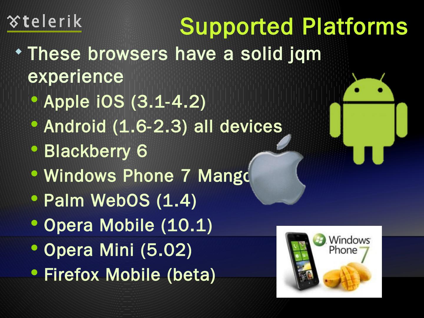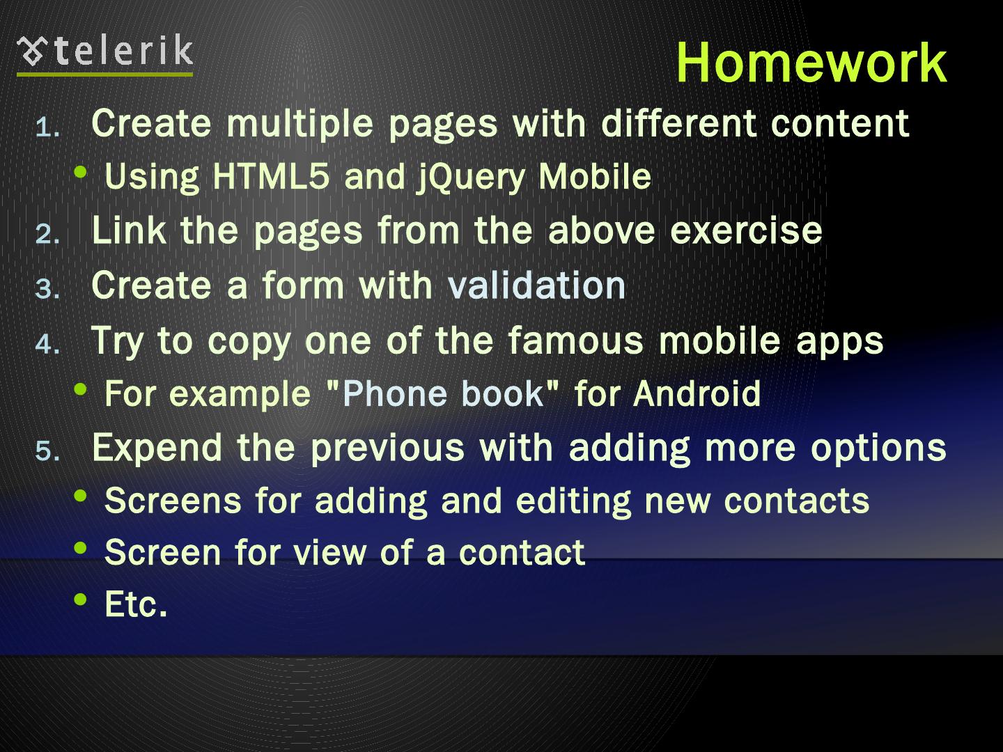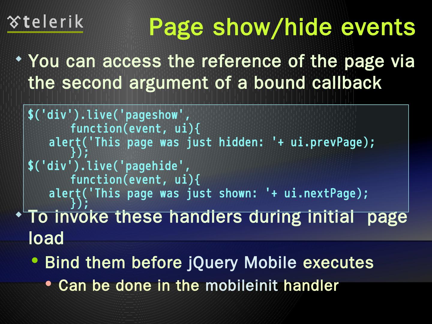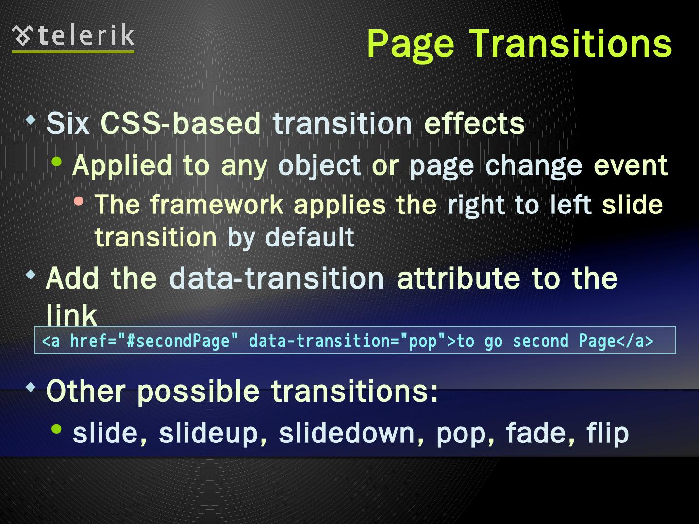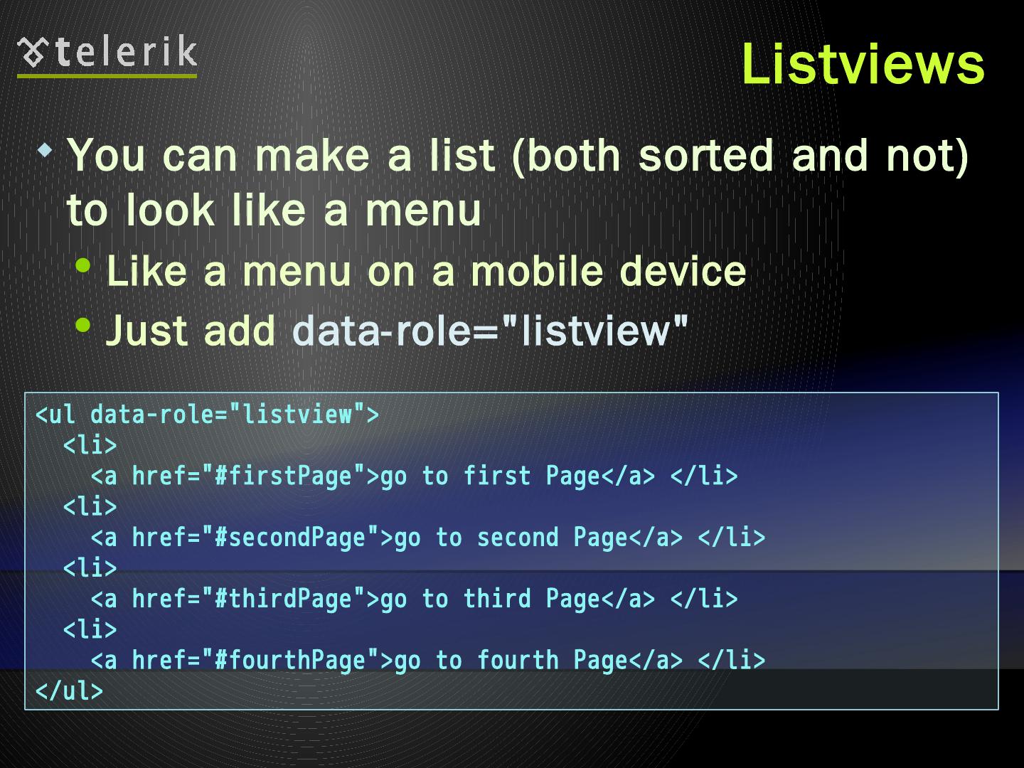 jQuery Mobile Overview; Methods and Utilities; Responsive Layout; Data-* Attributes. Pages; Dialogs; Buttons. jQuery Events; Features of jQuery Mobile. jQuery ...