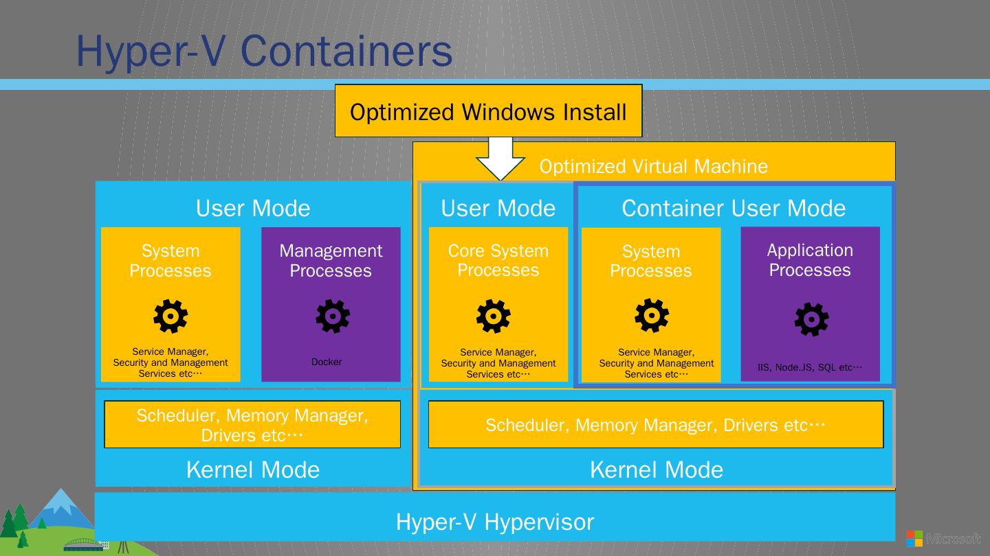 Linux. Image Repository. Applications. Application. Frameworks. Container ... Docker. Kernel Mode. Scheduler, Memory Manager, Drivers etc… Container.