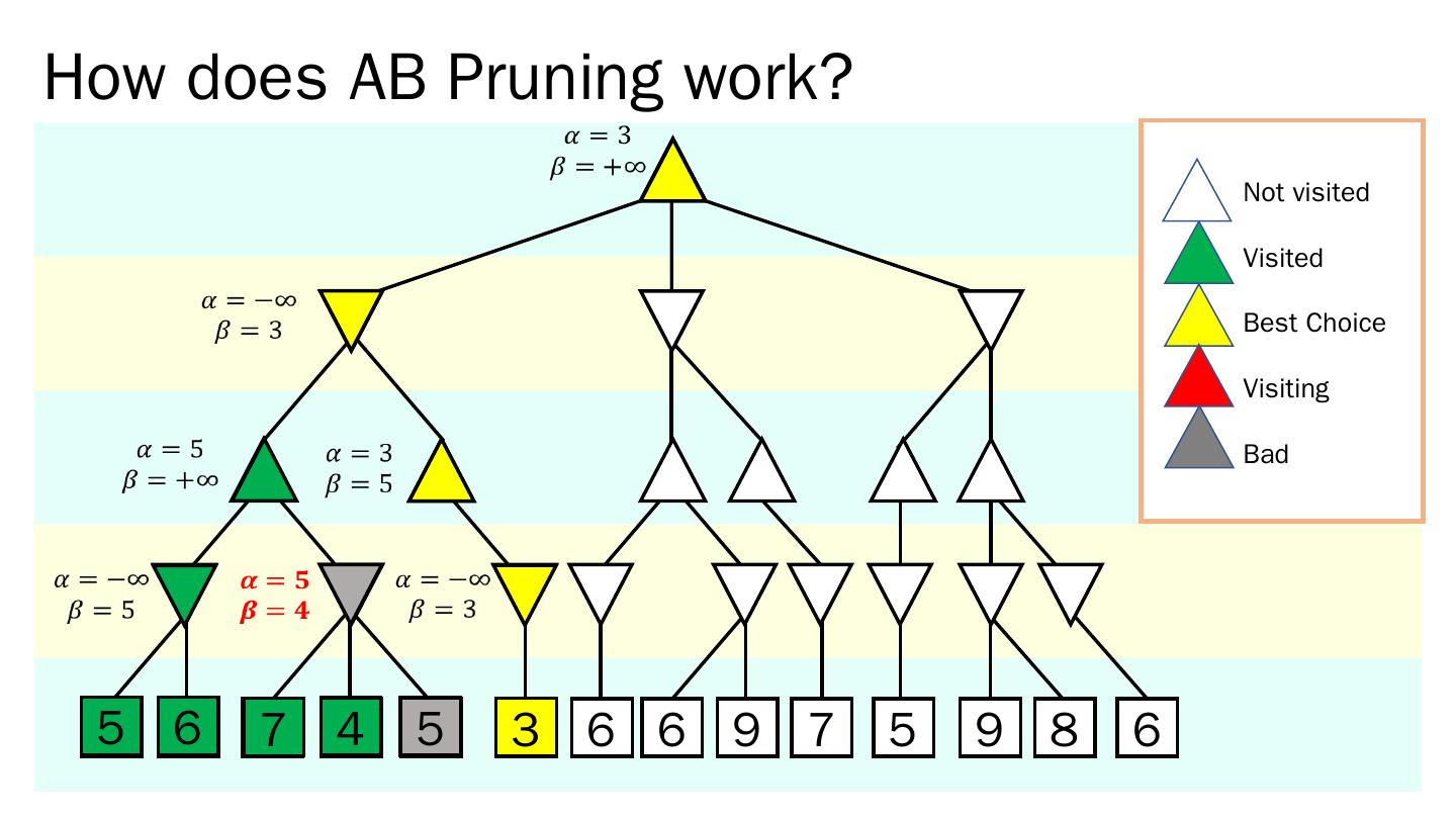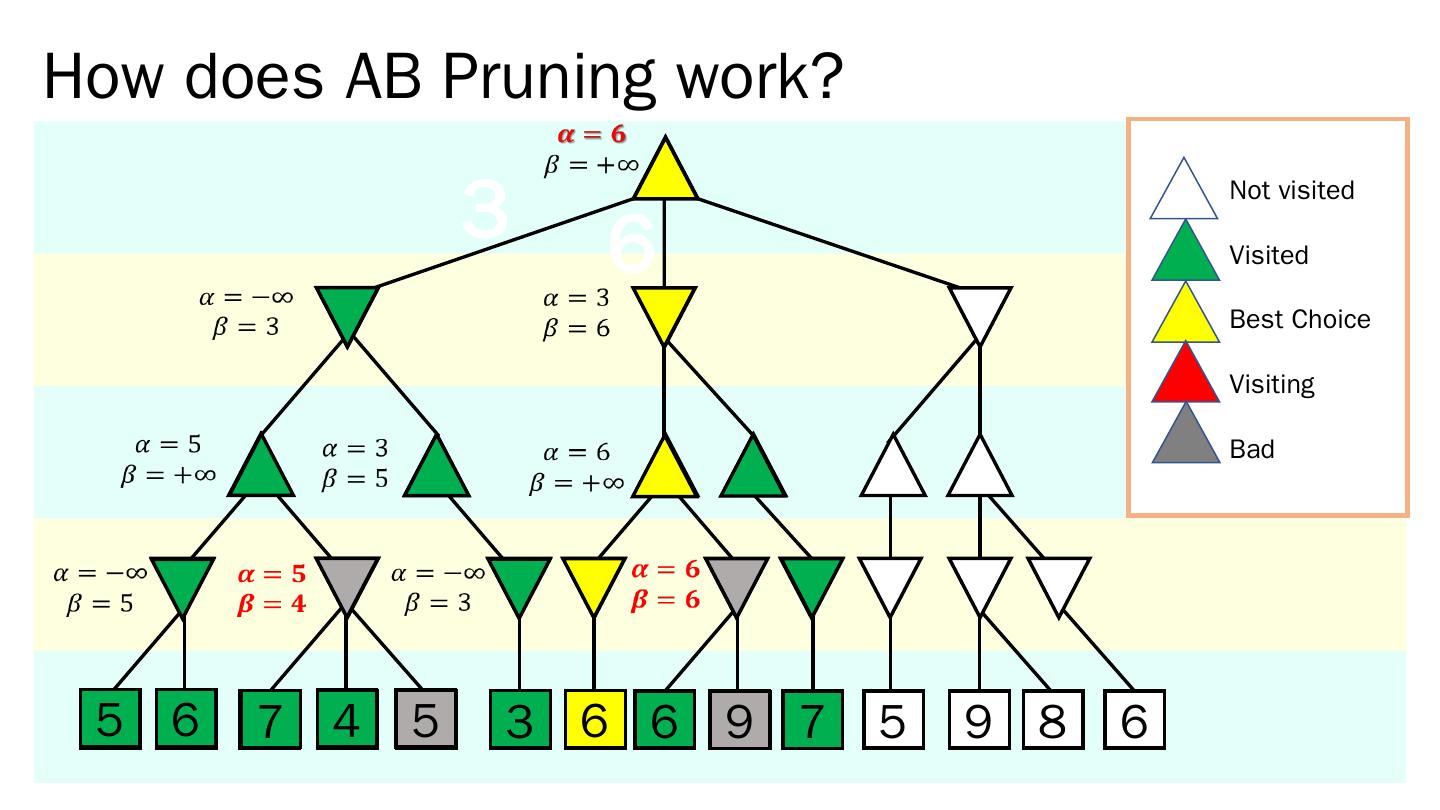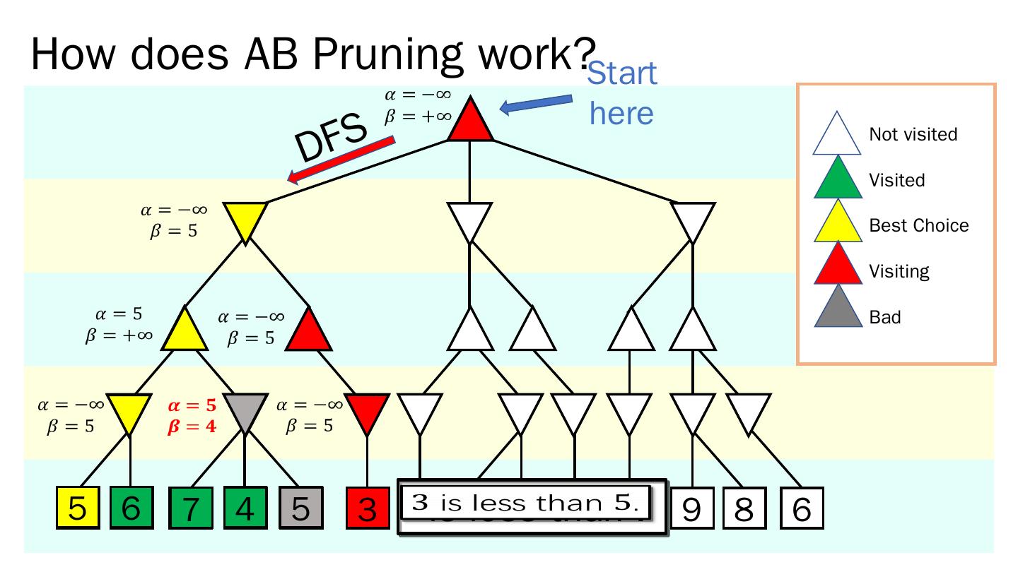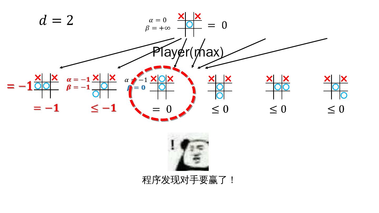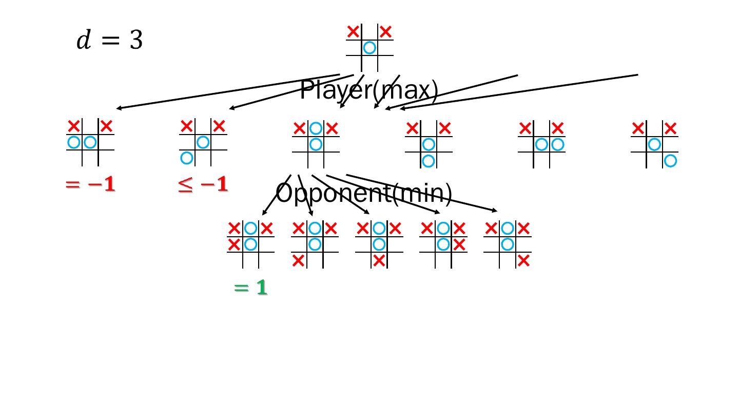 DFS搜索这棵决策树,在深度为4的第一个节点有两种决策,对我的优势分别是10和+∞。对方会选择让我优势最小化的决策(10);第二个节点只有一种决策,优势为5。