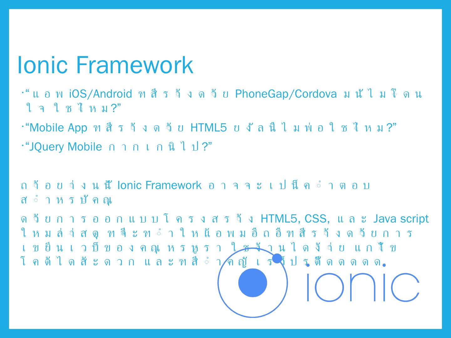 “แอพ iOS/Android ที่สร้างด้วย PhoneGap/Cordova มันไม่โดนใจ ใช่ไหม?” “Mobile App ที่สร้างด้วย HTML5 ยังลื่นไม่พอใช่ไหม?” “JQuery Mobile กากเกินไป?” ถ้าอย่างนั้น ...