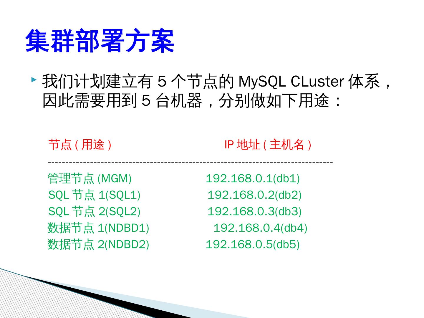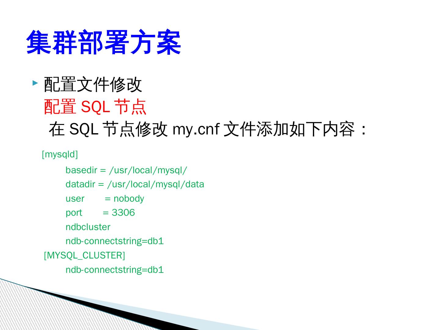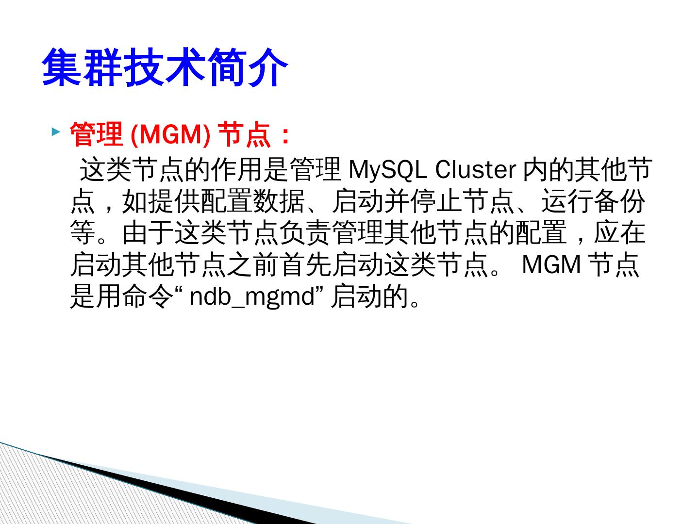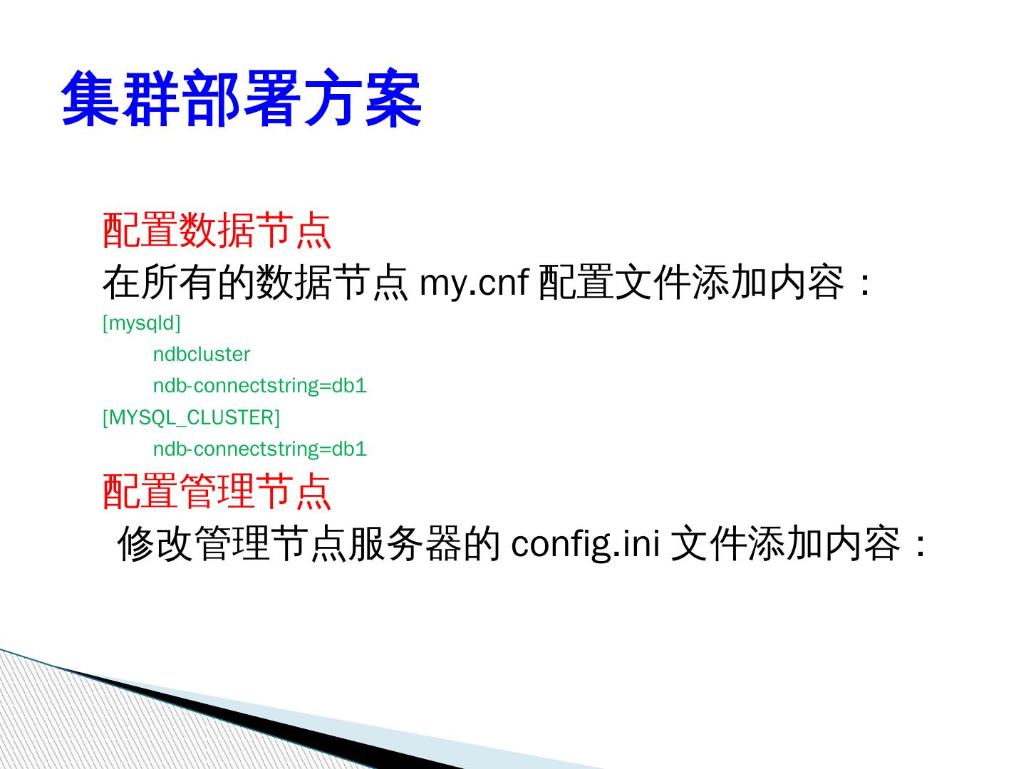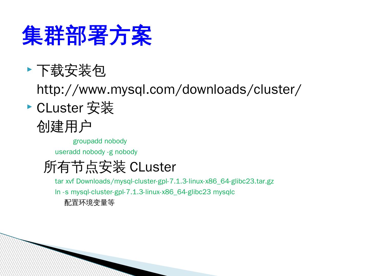 Share-Nothing数据节点之间没有磁盘、内存等共享内容,都是各自管理自己的 ... 在MyQL 5.0及以上的二进制版本中、以及与最新的Linux版本兼容的RPM中提供了该 ...