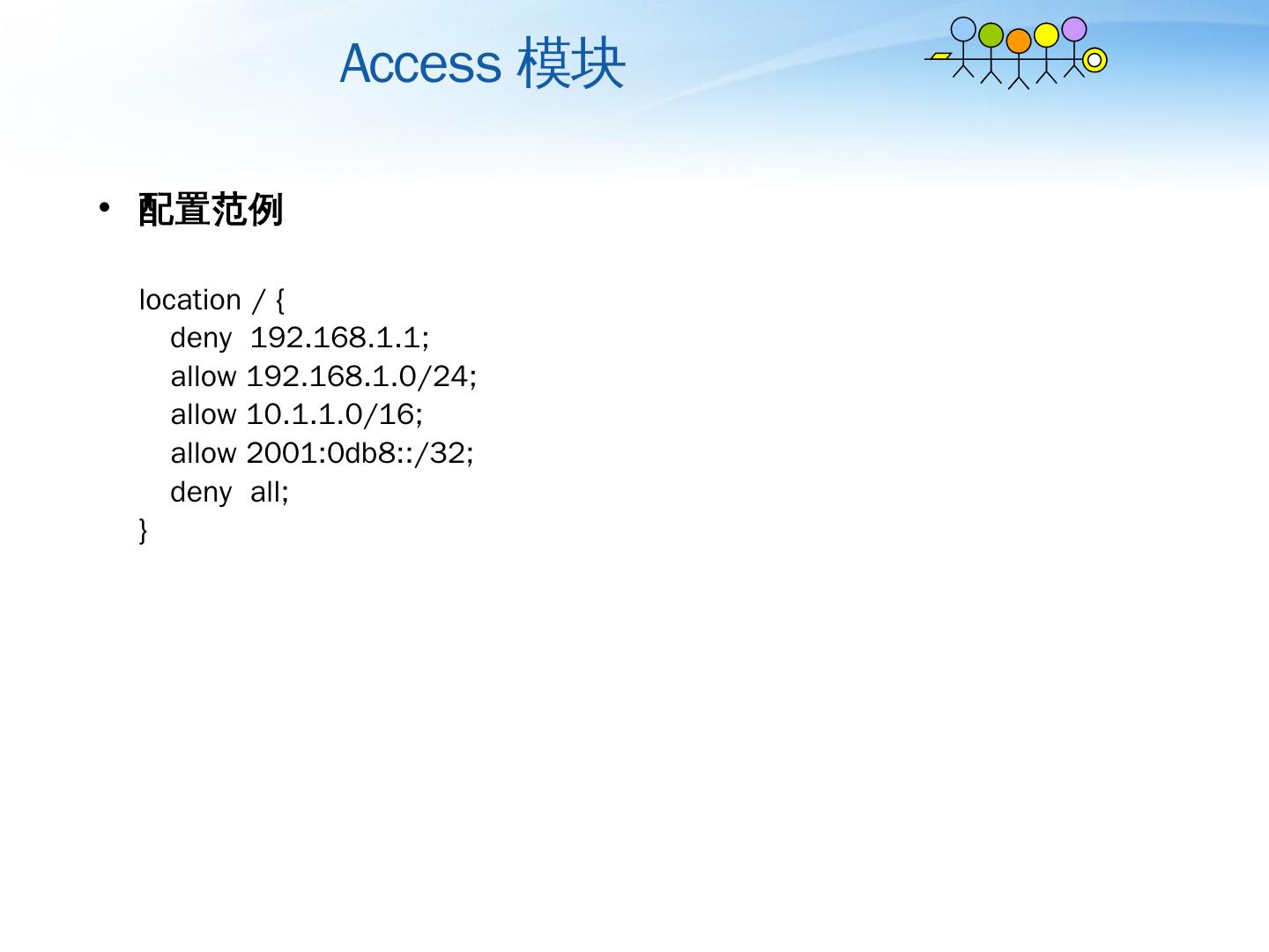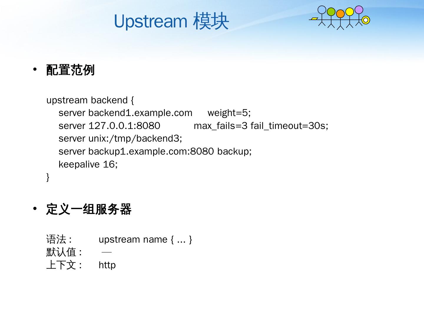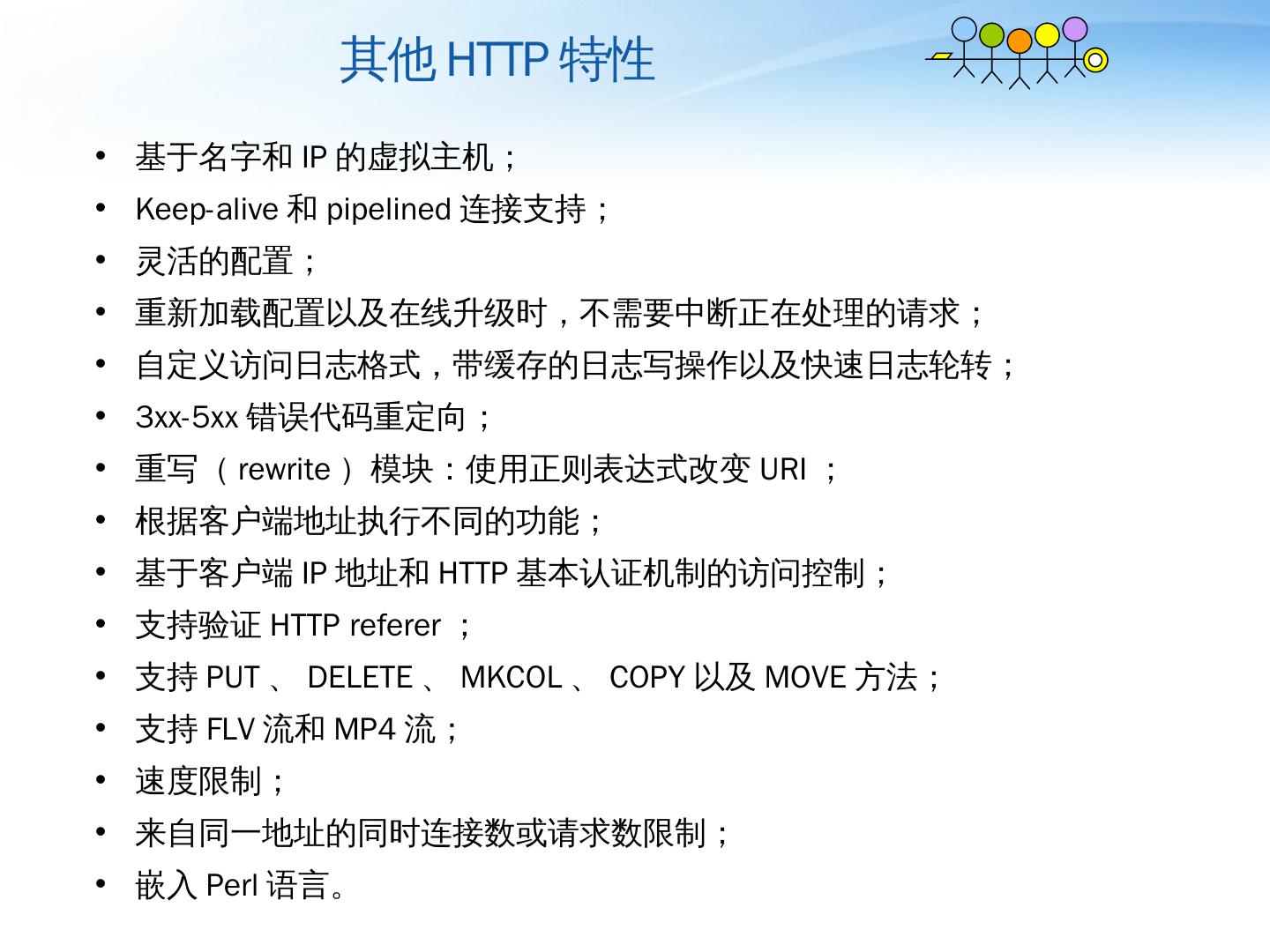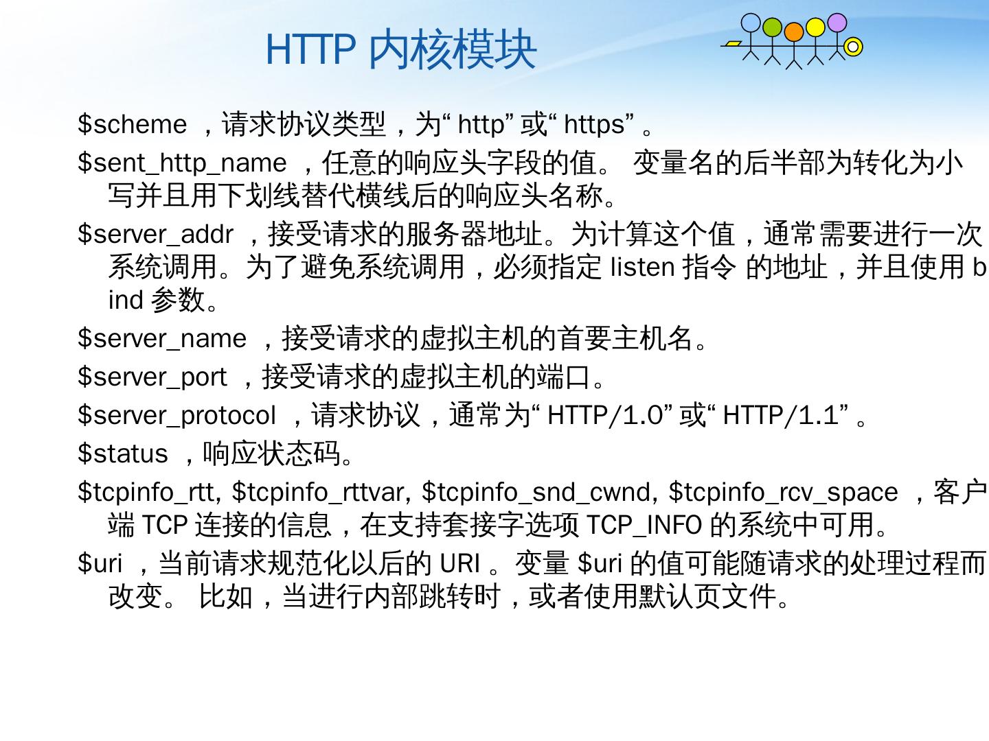 Nginx详解. ——介绍、模块、运维. 薛长俊. 2013.8. 目 录. 介绍. 模块. 运维. 目 录. 介绍. 模块. 运维. 基本HTTP特性. 处理静态文件,索引文件以及自动索引;; 打开文件 ...